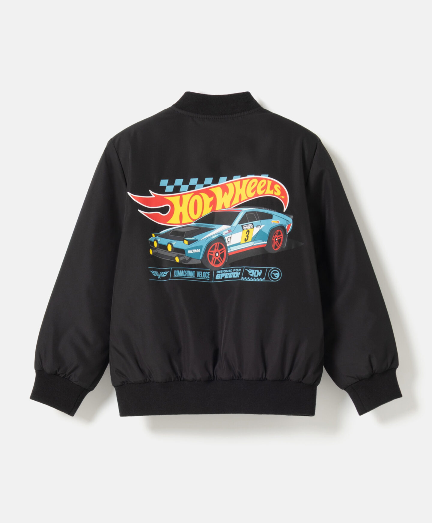 Geaca bomber pentru băieți cu licență Hot Wheels se închide cu fermoar practic. Buzunarele încăpătoare țin mâinile la cald în zilele răcoroase și pot ascunde mici comori, precum figurine sau mașinuțe Hot Wheels. Imprimeul dinamic de pe spate atrage privirile și arată clar că jacheta aparține unui mic pasionat de mașini.