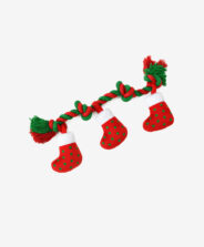 Jucăria pentru câine cu șosete are un design colorat și elemente moi în formă de șosete roșii. Frânghia rezistentă asigură durabilitate, iar detaliile moi diversifică jocul. Cromatica veselă evocă spiritul Crăciunului.