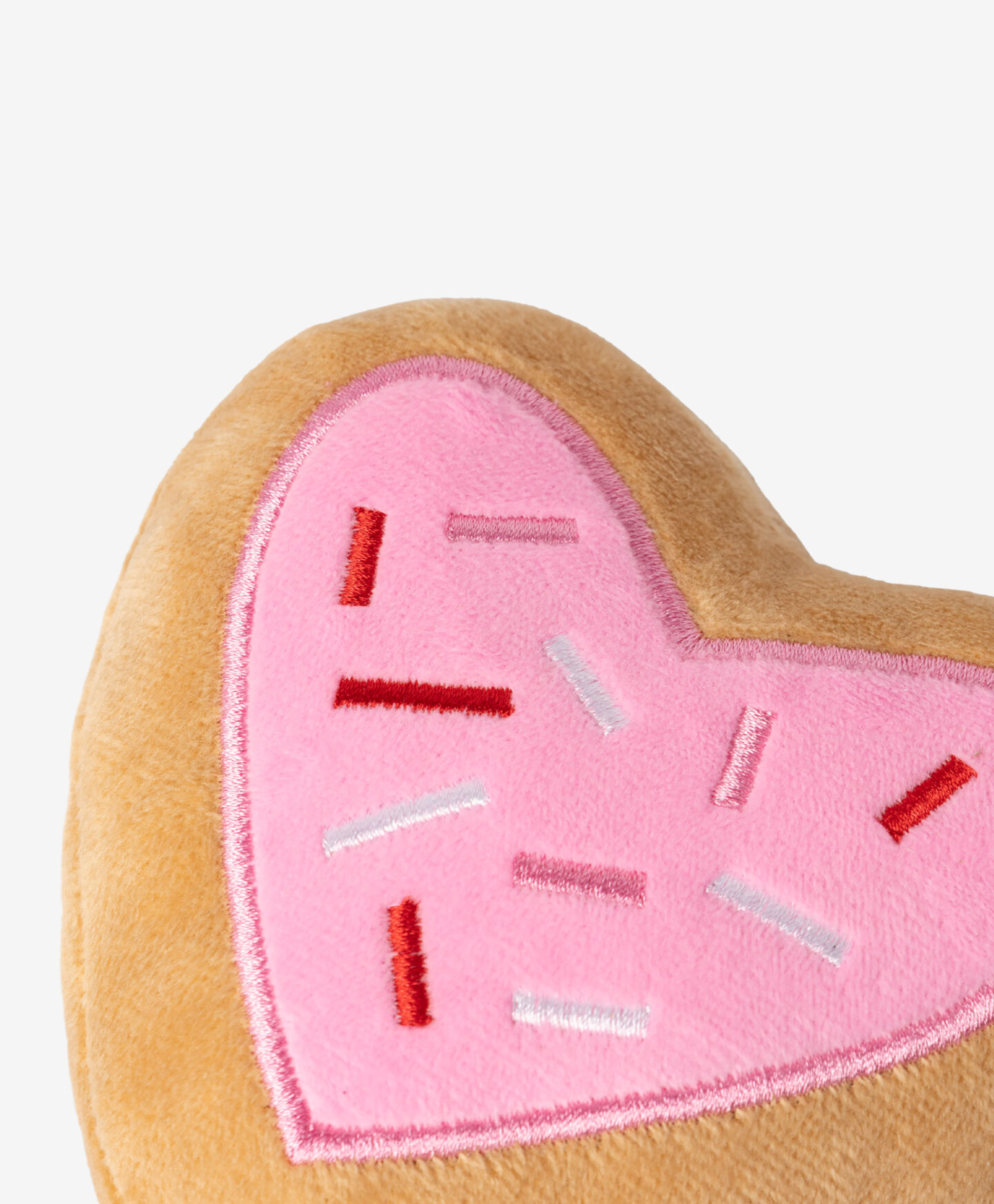 Jucăria pentru câini în formă de inimă este ideală pentru joacă și ros, fiind realizată din materiale sigure pentru dinți și gingii.