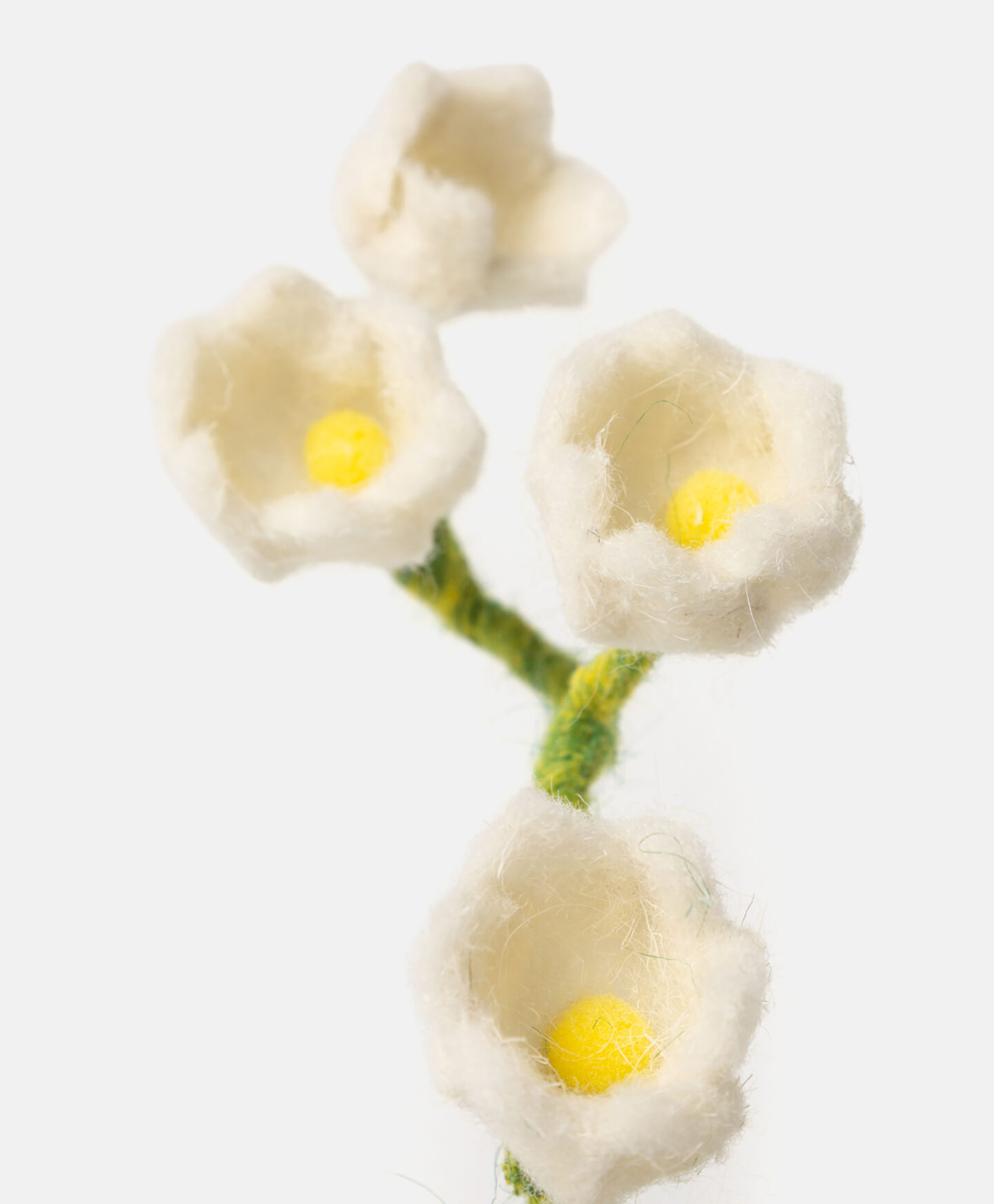 Lăcrămioarele albe din fetru, cu tulpină flexibilă, își păstrează aspectul autentic al florilor naturale timp de multe sezoane. Sunt rezistente la deteriorare și la decolorare. Tulpina flexibilă îți permite să le modelezi și să le aranjezi liber, adaptându-le viziunii tale și stilului de decor. Sunt disponibile diverse modele.