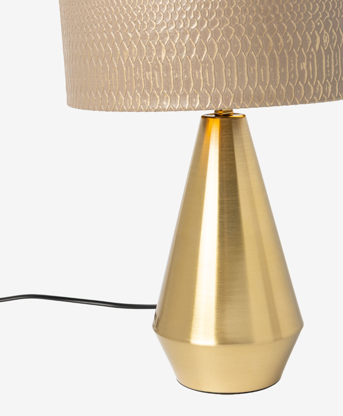 Lampa cu bază aurie reprezintă o combinație reușită între eleganță și modernitate. Baza aurie adaugă un accent luxos, iar abajurul creează o lumină caldă și plăcută, potrivită pentru living, dormitor sau birou.