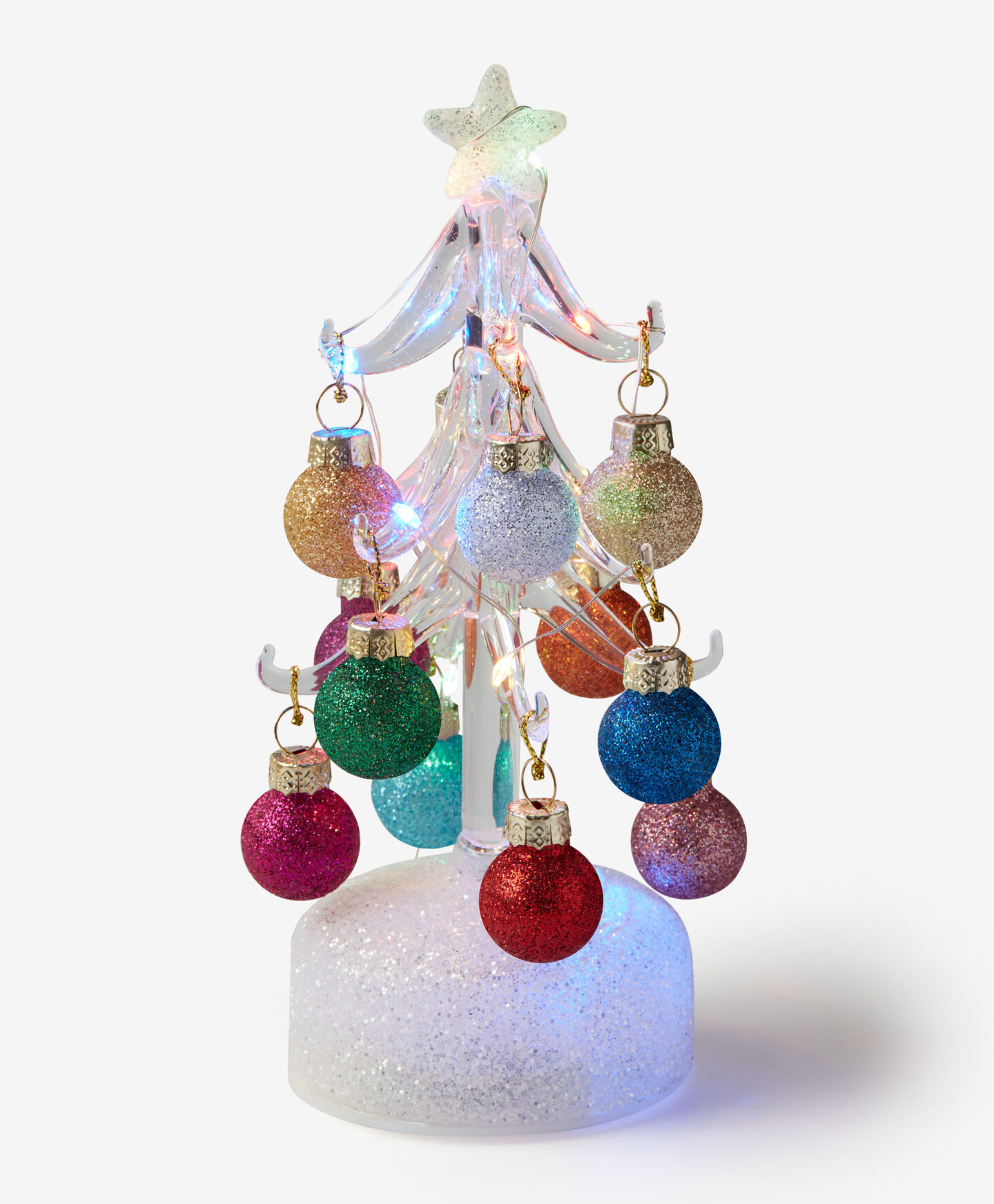 Bradul decorativ din sticlă cu LED-uri și globuri este o mică operă de artă ce îmbină delicatețea sticlei cu magia luminii. Structura fină, iluminată din interior, face ca globurile colorate să capete un efect de basm. Este o decorațiune deosebită, potrivită atât pentru masa festivă, cât și ca accent cald în orice cameră.
