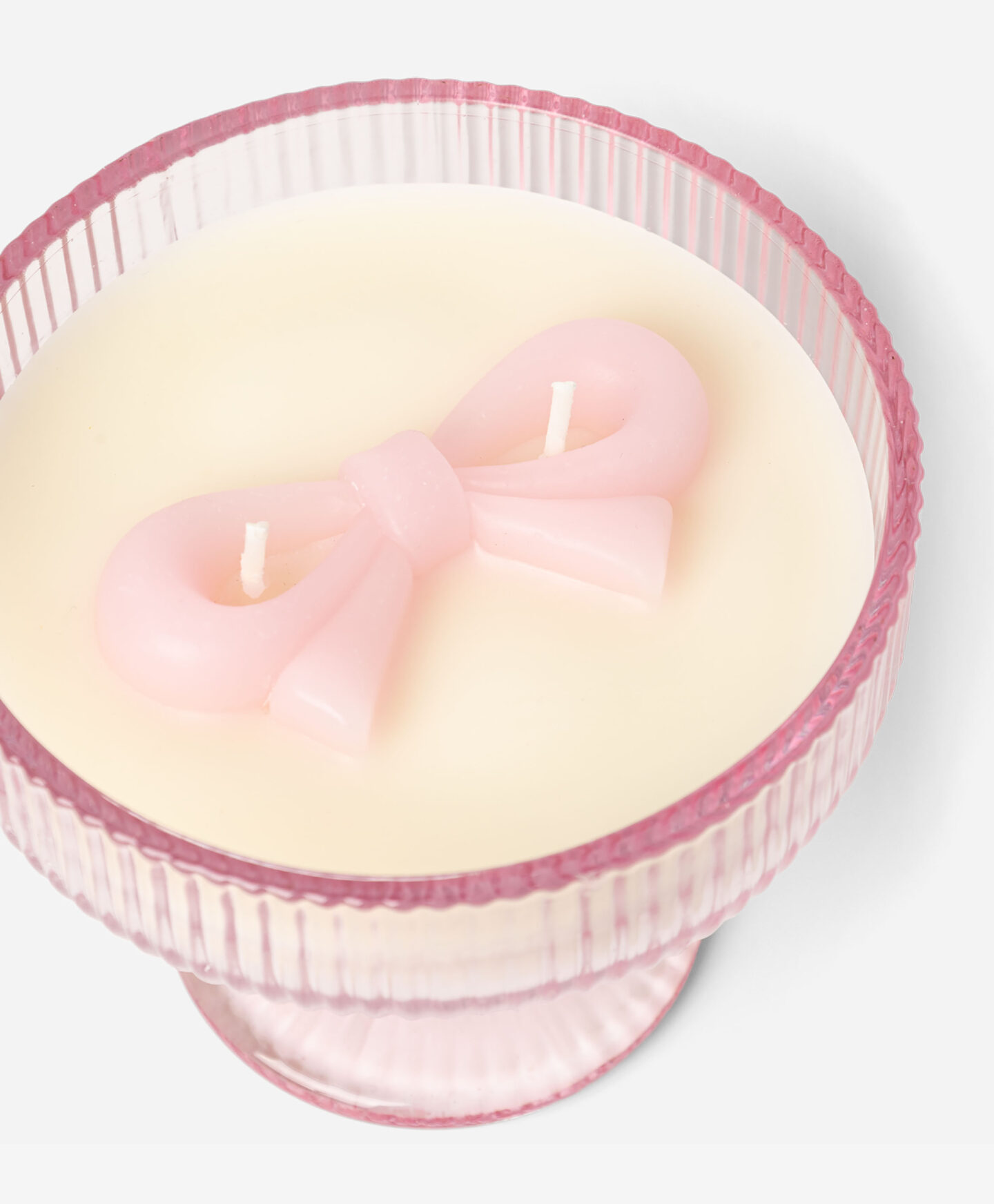 Lumânarea parfumată în pahar cu fundă completează decorul și creează o atmosferă relaxantă. Este o idee inspirată de cadou.