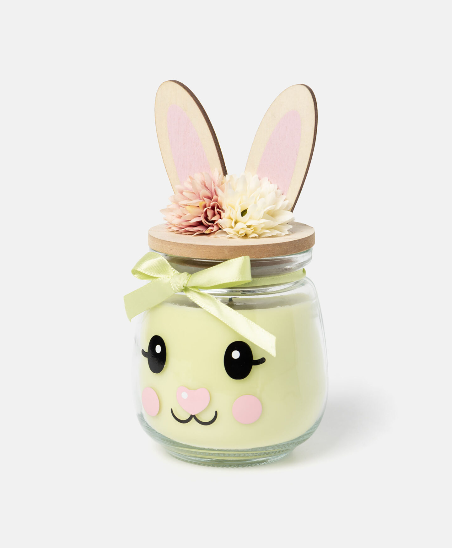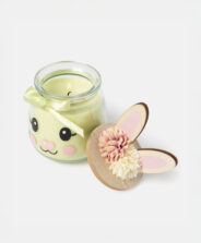 Lumânarea parfumată verde, în pahar cu capac decorativ cu urechiușe 3D, impresionează prin designul său vesel. Are timp îndelungat de ardere și parfum plăcut. Sunt disponibile trei modele.