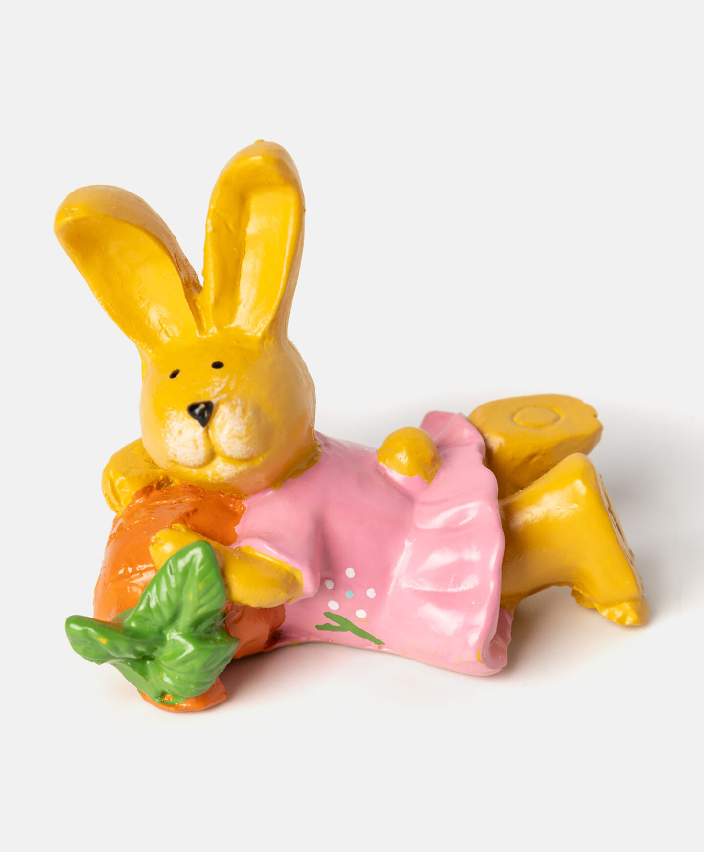 Mini iepurașul-cadou cu morcov, în săculeț, este o idee gata pregătită pentru un dar de Paște. Polirășina este un material durabil și ușor, rezistent la deteriorare și la decolorare, ceea ce îi asigură figurinei o durată lungă de viață. Designul său adorabil îi va încânta atât pe cei mici, cât și pe cei mari.