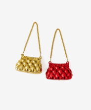Ornamentele în formă de geantă adaugă un strop de eleganță și strălucire bradului. Setul include două mini-genți – una aurie și una roșie – fiecare prevăzută cu un lanț decorativ ca mâner. Textura lor lucioasă, cu efect matlasat, reflectă frumos lumina instalațiilor, creând o decorațiune rafinată, perfectă pentru iubitorii de detalii stilate.