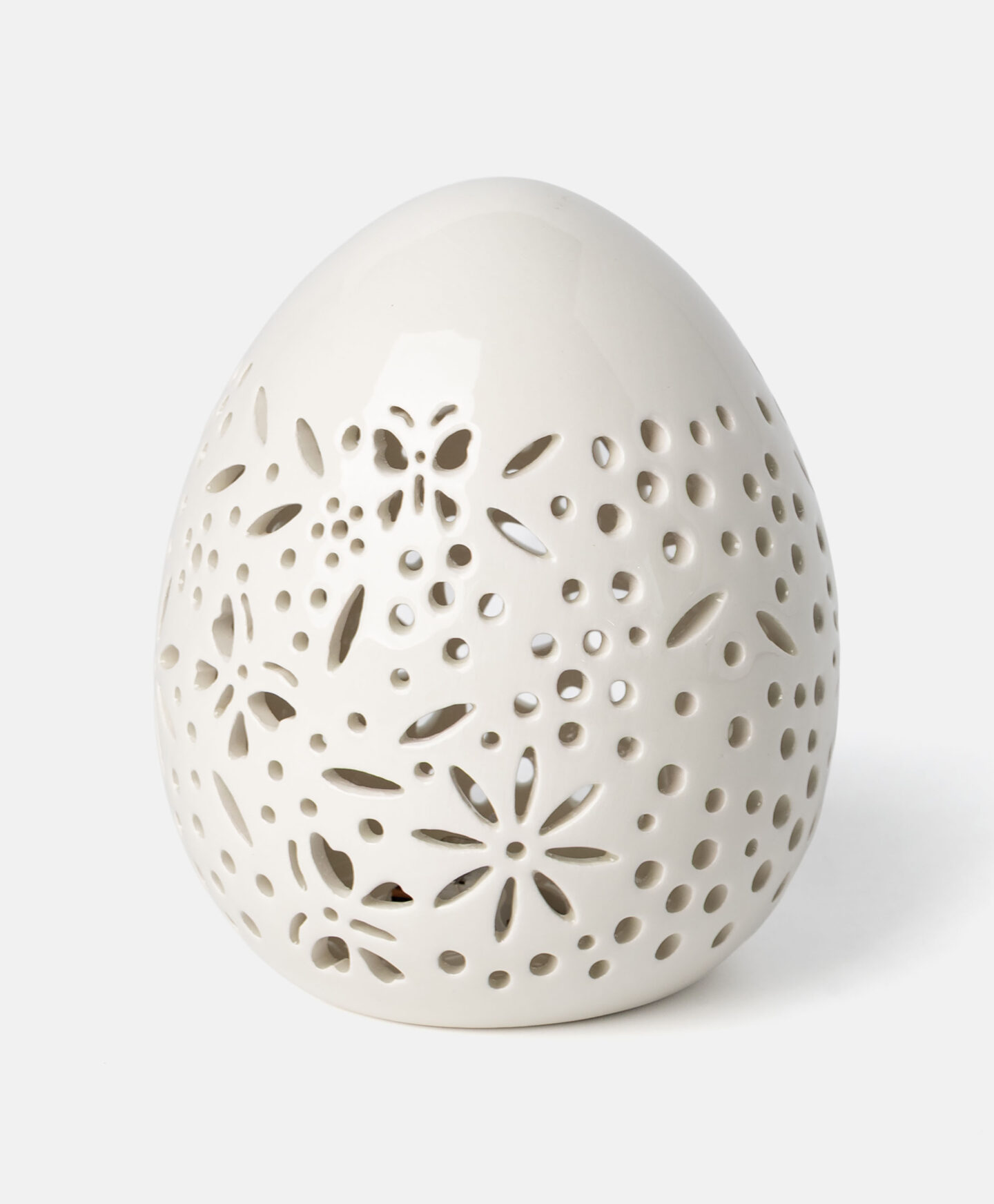 Oul LED cu model traforat va crea o atmosferă magică în orice locuință. Acest ou deosebit, cu decupaje fine, arată splendid atât ziua, cât și seara, când luminează cu o strălucire subtilă. Este o idee minunată de cadou pentru Paște.