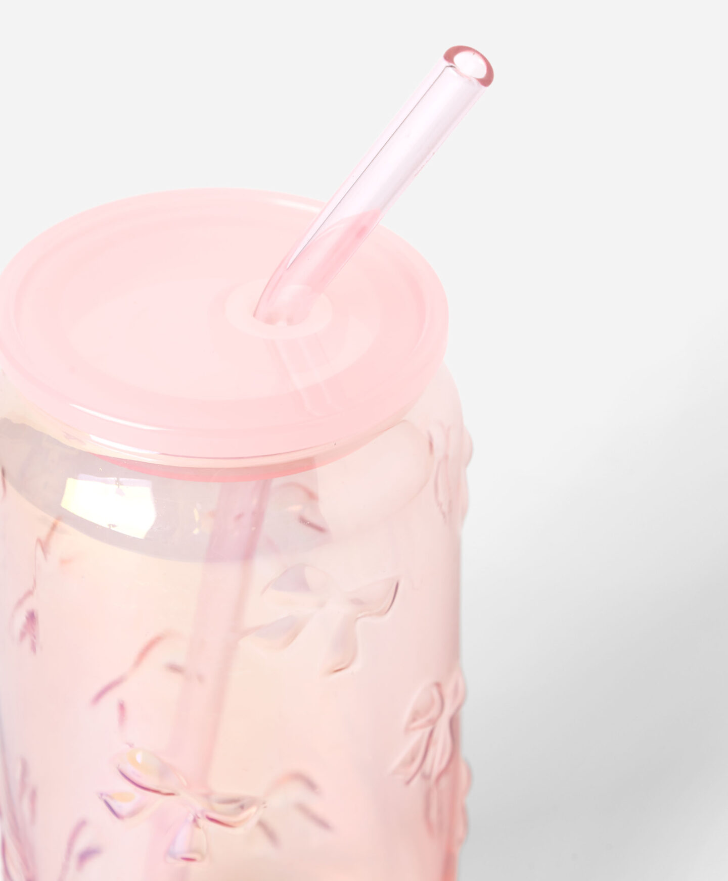 Paharul cu pai și funde, cu efect holografic, este perfect pentru băuturi acasă sau la picnic. Capacul previne scurgerile, iar designul atrage privirea.