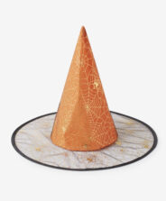 Pălăria de vrăjitoare portocalie este ideală pentru a da un plus de farmec ținutei tale de Halloween. Pânzele aurii strălucesc în lumină, iar conul oferă stabilitate. Este disponibilă și în varianta neagră.