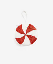 Pandantivul în formă de acadea pare desprins dintr-o cofetărie de poveste. Modelul spirală în roșu și alb aduce un strop de veselie și prospețime bradului, echilibrând perfect decorațiunile clasice. Structura moale îl face nu doar frumos, ci și practic – îl poți agăța fără grijă chiar și acolo unde au acces copiii sau animalele de companie.