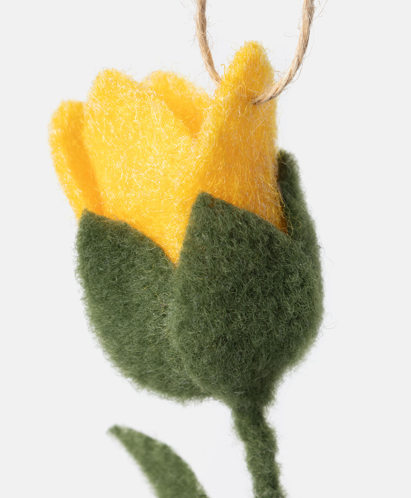 Pandantivul din fetru în formă de lalea galbenă va înfrumuseța orice decor de primăvară. Îl poți agăța pe crenguțe aranjate într-o vază, pentru un efect deosebit. Materialul moale adaugă un plus de confort vizual și o notă cozy spațiului. Este și un cadou minunat pentru cei care apreciază motivele florale.
