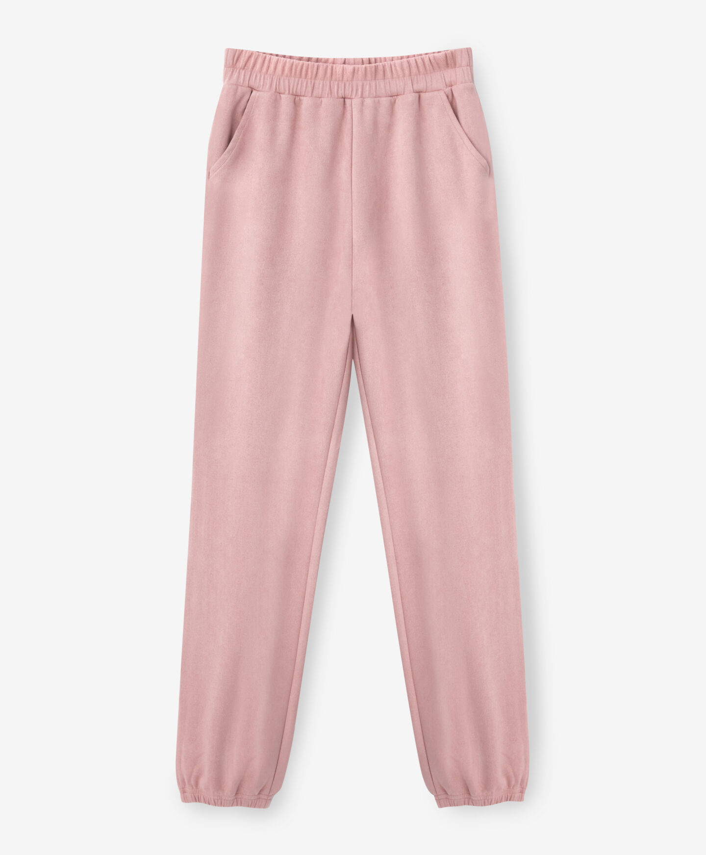 Pantalonii pentru femei din velur cu buzunare sunt o alegere elegantă și confortabilă pentru fiecare zi. Sunt moi, plăcuți la atingere și perfecți pentru plimbările de toamnă. Nuanța subtilă de roz se potrivește perfect cu bluza cu glugă din colecție. Disponibili în mai multe modele.