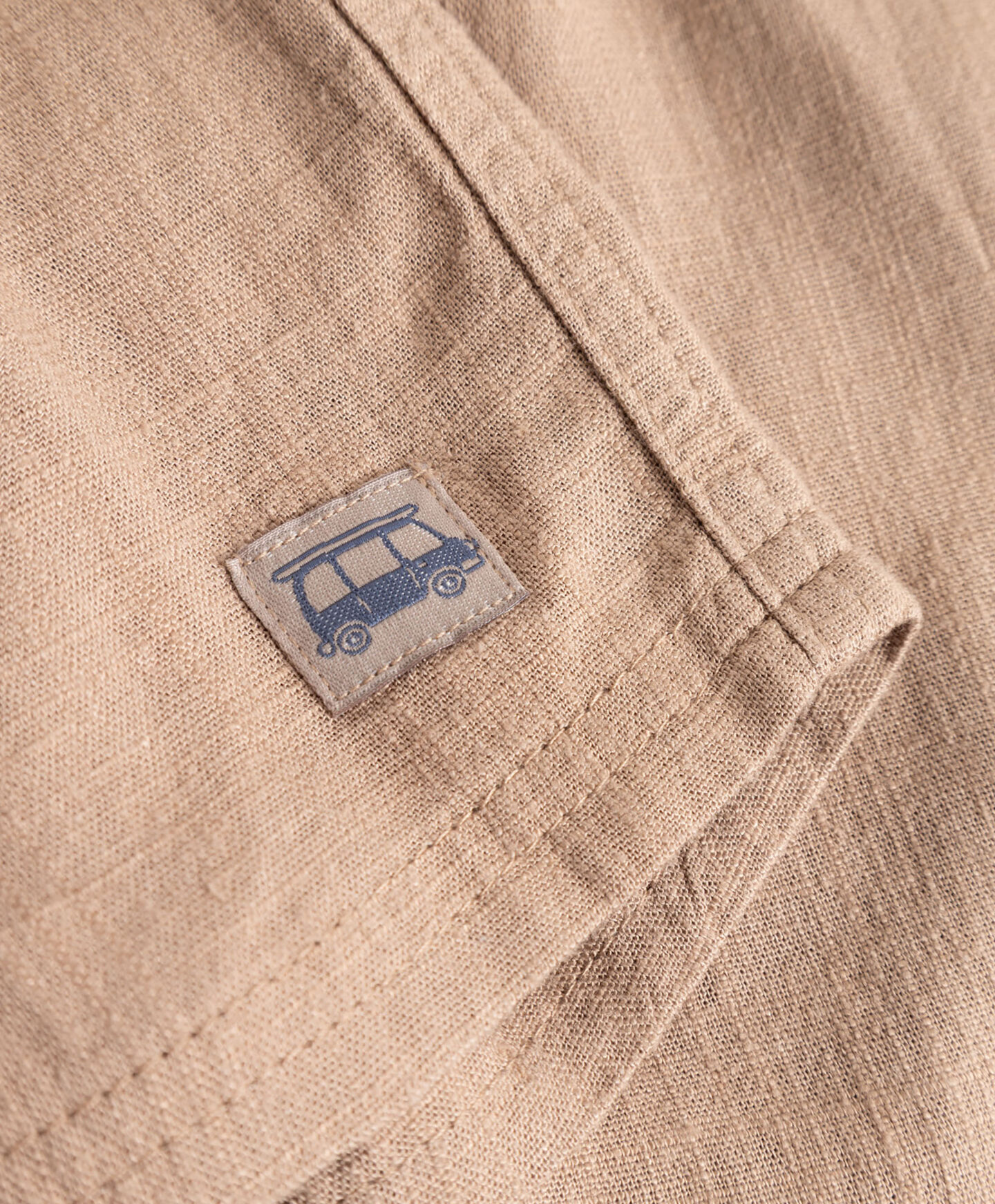 Pantalonii scurți pentru băieți bebeluși evocă atmosfera călătoriilor de vară. Materialul natural permite pielii copilului să respire chiar și în zilele calde. Croiala lejeră a cracului oferă libertate în timpul târâtului, al primilor pași sau al mișcărilor energice din picioare. Talia elastică, lată și moale, fixează delicat pantalonii pe burtică. Nuanța bej se potrivește cu aproape orice tricou sau body.