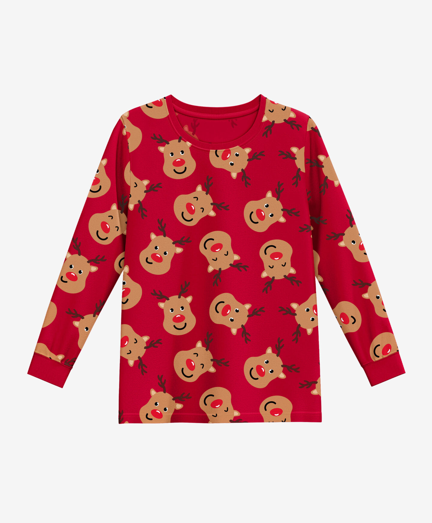 Pijamaua pentru băieți cu reni, din bumbac 100%, conține o bluză cu mânecă lungă și pantaloni, perfectă pentru nopțile mai răcoroase. Bumbacul moale și respirabil oferă confort și căldură, asigurând un somn liniștit. Modelul festiv aduce o atmosferă veselă în casă.