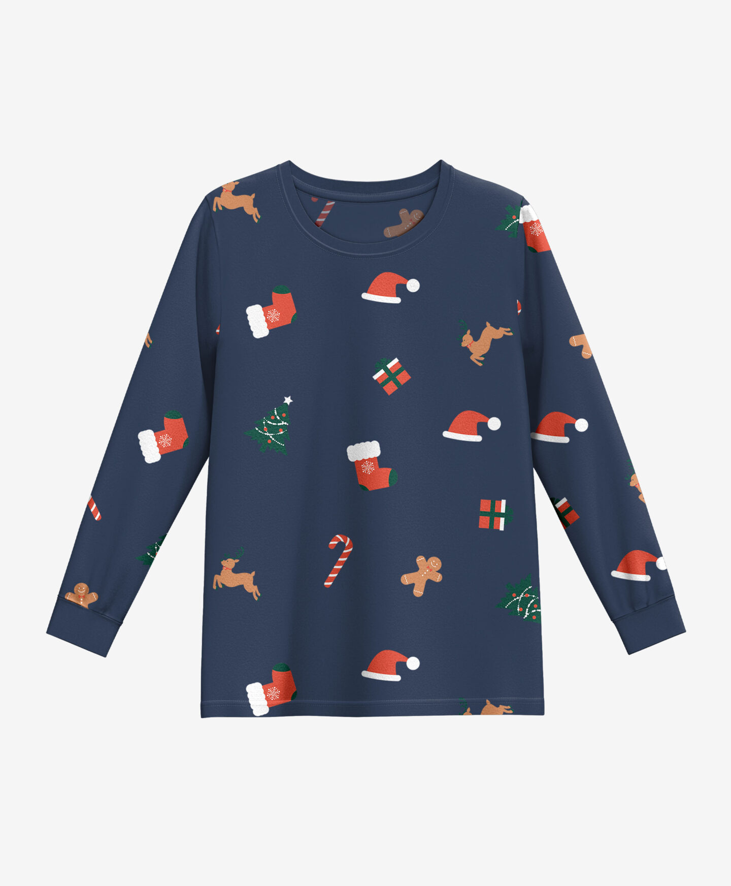 Pijamaua pentru băieți de Crăciun, din bumbac 100%, este moale și plăcută pe piele. Setul include o bluză cu mânecă lungă și pantaloni, perfecte pentru nopțile reci. Țesătura respirabilă îl învăluie delicat în somn și previne supraîncălzirea. O pijama care promite seri pline de relaxare.