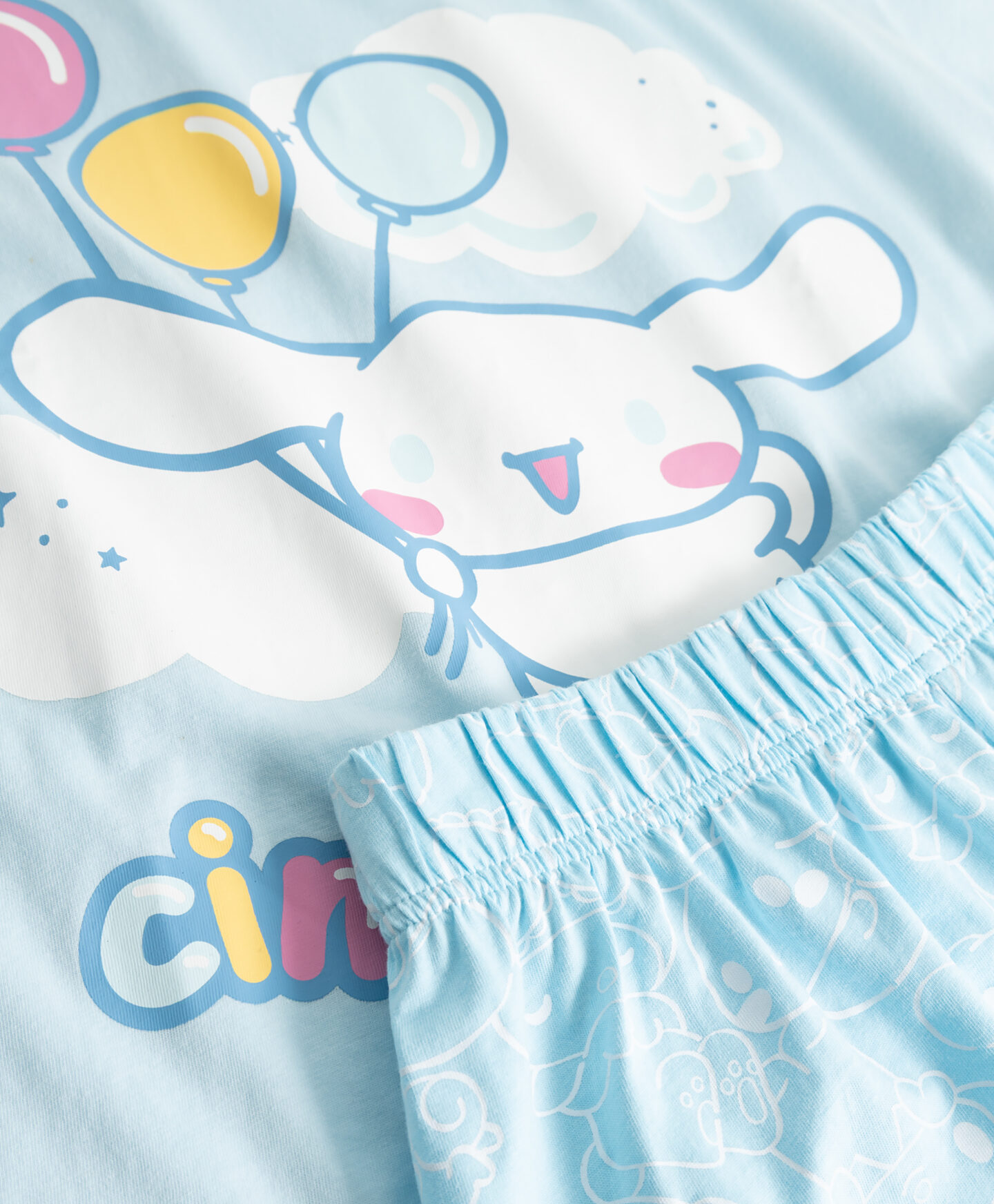 Pijamalele pentru fete cu licență Cinnamoroll, 100% bumbac, sunt compuse din tricou și pantaloni scurți. Sunt ideale pentru nopțile mai călduroase. Materialul este plăcut la atingere și învăluie delicat copilul în timpul somnului, iar croiala clasică garantează libertate de mișcare. În ofertă sunt disponibile mai multe modele.