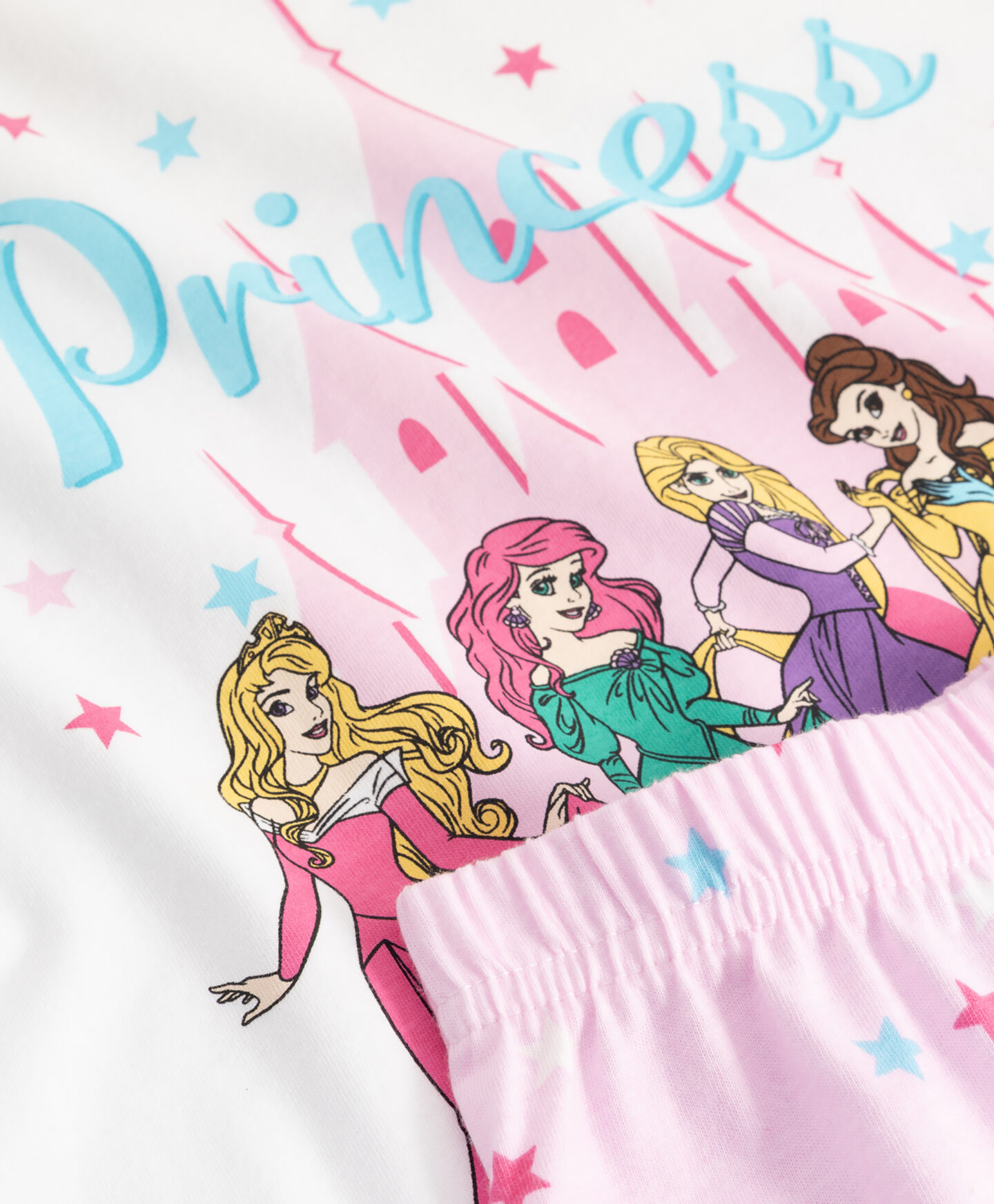Pijamaua pentru fete cu licență Disney Princess, 100% bumbac, încântă prin modelele sale frumoase. Setul este format din tricou și pantaloni scurți. Este ideală pentru nopțile mai călduroase. Materialul este plăcut la atingere și învăluie delicat copilul în timpul somnului, iar croiala clasică garantează libertate de mișcare.