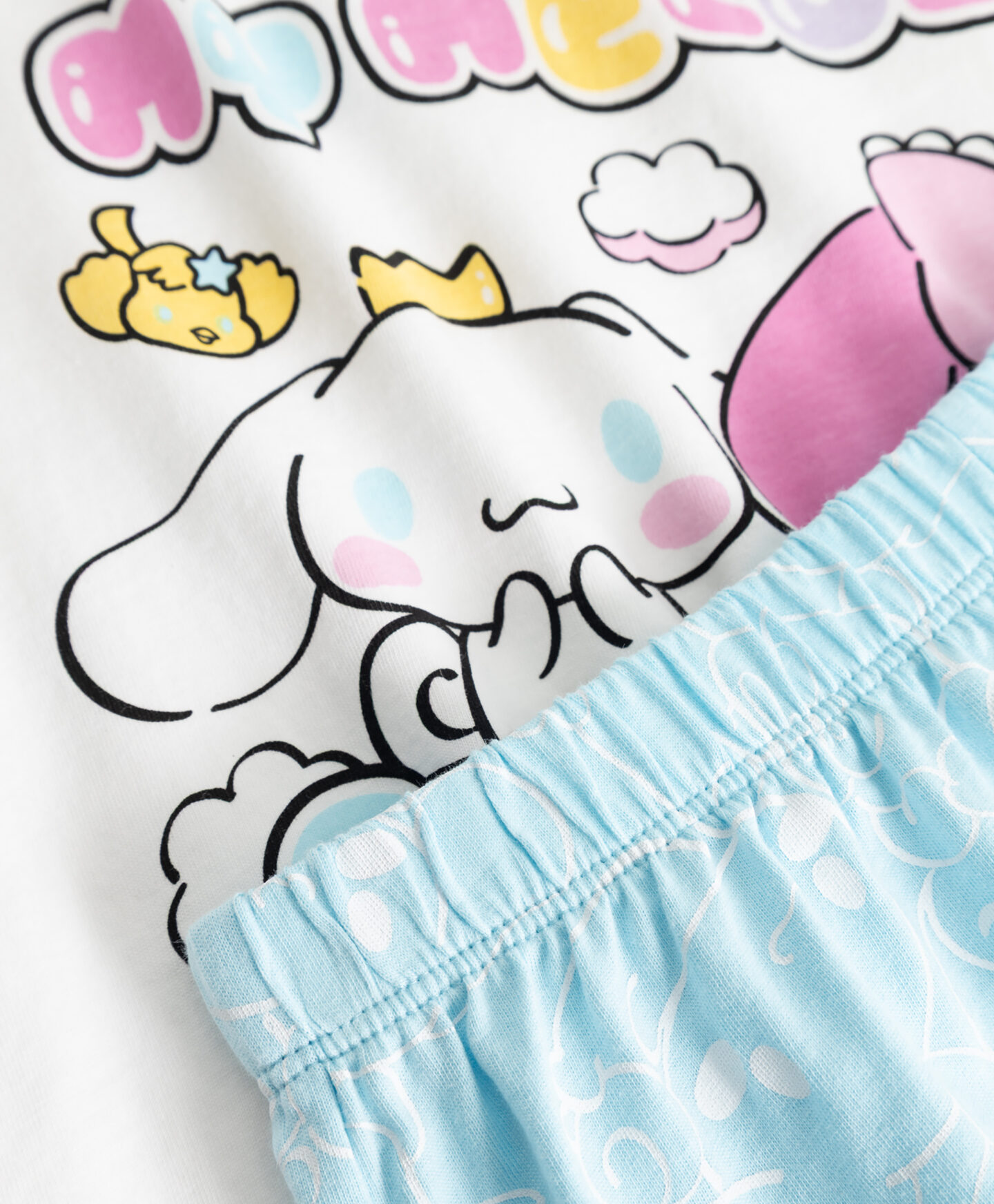 Pijamalele pentru fete cu licență My Melody & Cinnamoroll, 100% bumbac, sunt compuse din tricou și pantaloni scurți. Sunt ideale pentru nopțile mai călduroase. Materialul este plăcut la atingere și învăluie delicat copilul în timpul somnului, iar croiala clasică garantează libertate de mișcare. În ofertă sunt disponibile mai multe modele.