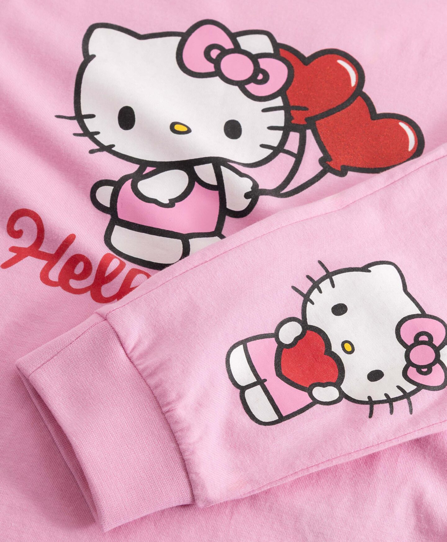 Pijamalele pentru fete cu licență Hello Kitty, formate din bluză cu mânecă lungă și pantaloni, sunt ideale pentru nopțile răcoroase. Materialul respirabil oferă confort pe durata somnului.