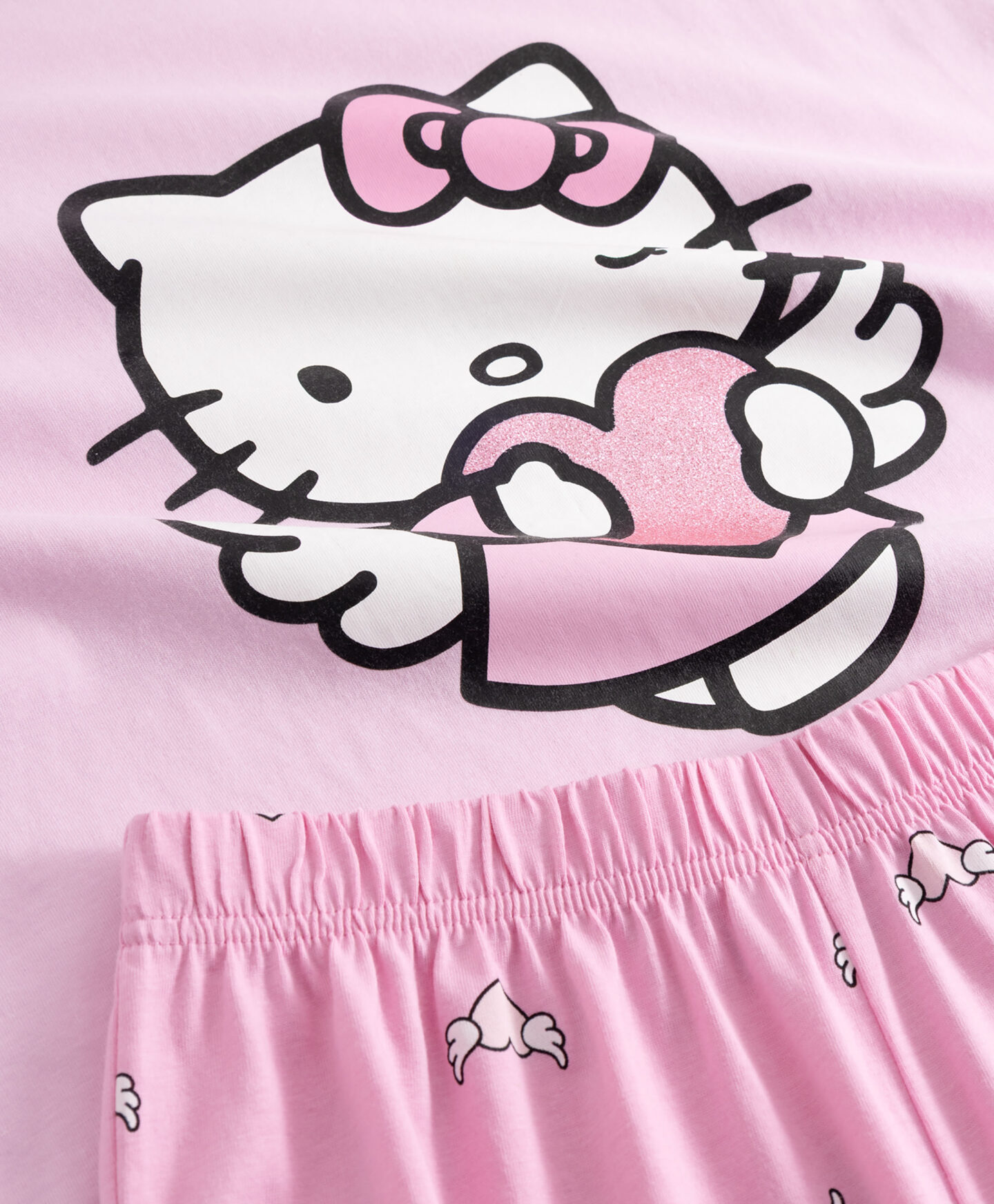 Pijamalele pentru fete cu licență Hello Kitty, formate din tricou cu mânecă scurtă și pantaloni lungi, oferă confort pe tot parcursul anului. Croiala lejeră permite libertate de mișcare.