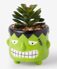 Planta artificială cu husă cu tematică Halloween, în formă de Frankenstein, este completarea ideală a decorului de toamnă. Designul vesel al ghiveciului aduce un aer jucăuș interiorului, iar planta nu necesită îngrijire.