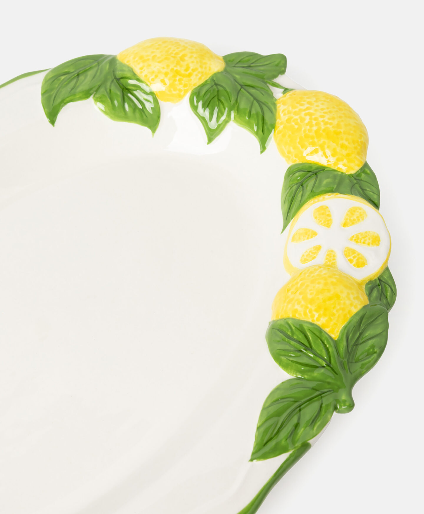 Platoul pentru servire din dolomit, cu model de lămâi în relief, creează un decor de masă cu adevărat estival. Materialul este durabil, rezistent la zgârieturi și temperaturi ridicate. Forma ovală este ideală pentru prezentarea preparatelor.