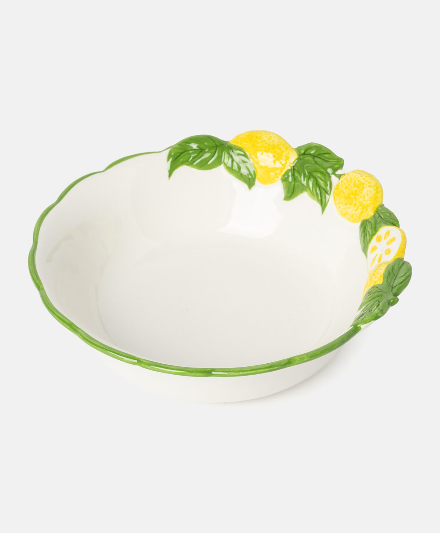 Platoul pentru servire din dolomit, cu model de lămâi în relief, creează un decor de masă cu adevărat estival. Materialul este durabil, rezistent la zgârieturi și temperaturi ridicate. Forma ovală este ideală pentru prezentarea preparatelor.
