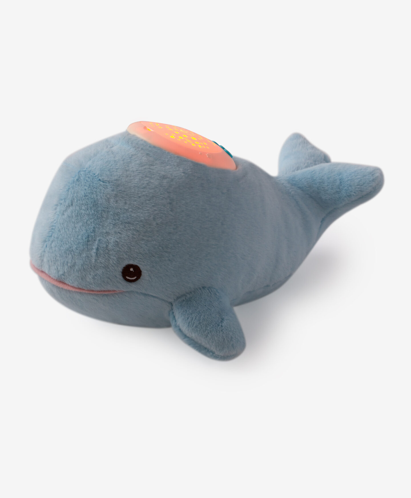 Proiectorul balenă combină funcția de jucărie moale cu cea de lampă de noapte. Lumina liniștitoare proiectată pe tavan te calmează, iar muzica blândă te ajută să adormi. Bateriile se vând separat.