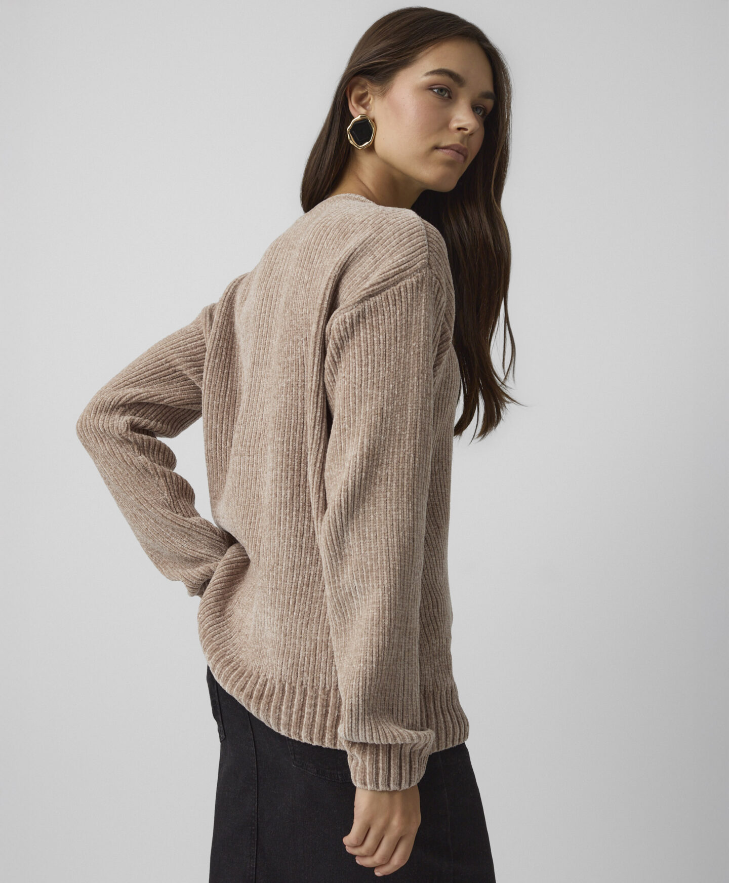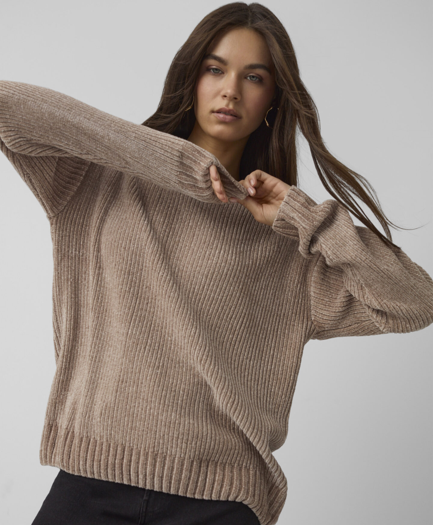 Puloverul maro, din tricot catifelat pentru femei, este potrivit atât pentru ținute casual, cât și elegante. Moale la atingere, îți oferă confort maxim la purtare. Îl găsești în două variante de culoare.