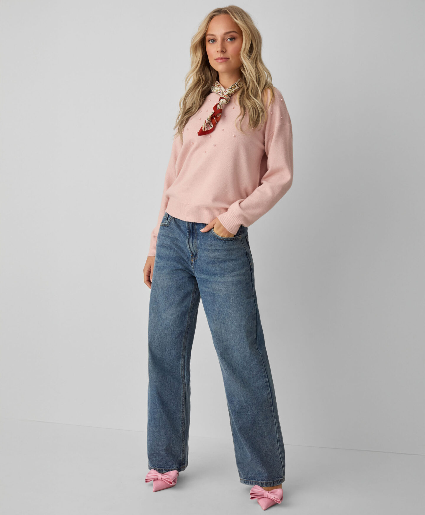 Puloverul pentru femei cu perle este o alegere elegantă pentru fiecare zi. Este călduros, moale la atingere și decorat cu perle mici în față. Se potrivește de minune cu o fustă, rochie sau pantaloni. Ideal pentru birou sau ocazii mai formale. Disponibil în două variante de culoare.