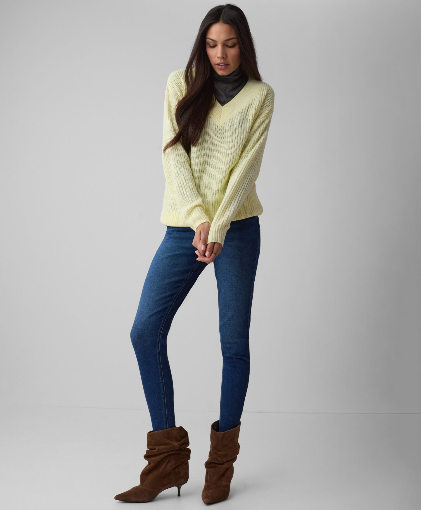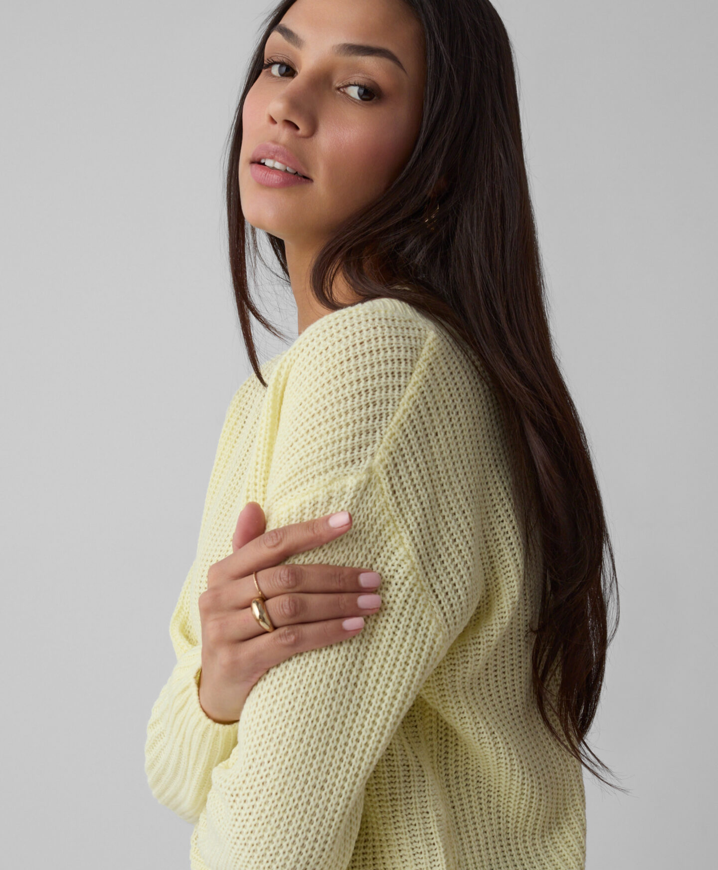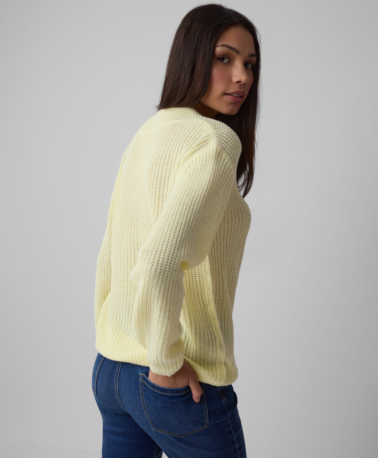 Puloverul pentru femei cu decolteu în V este o alegere practică și elegantă. Oferă confort termic și un aspect plăcut datorită tricotului decorativ. Se integrează ușor în ținute casual sau office.