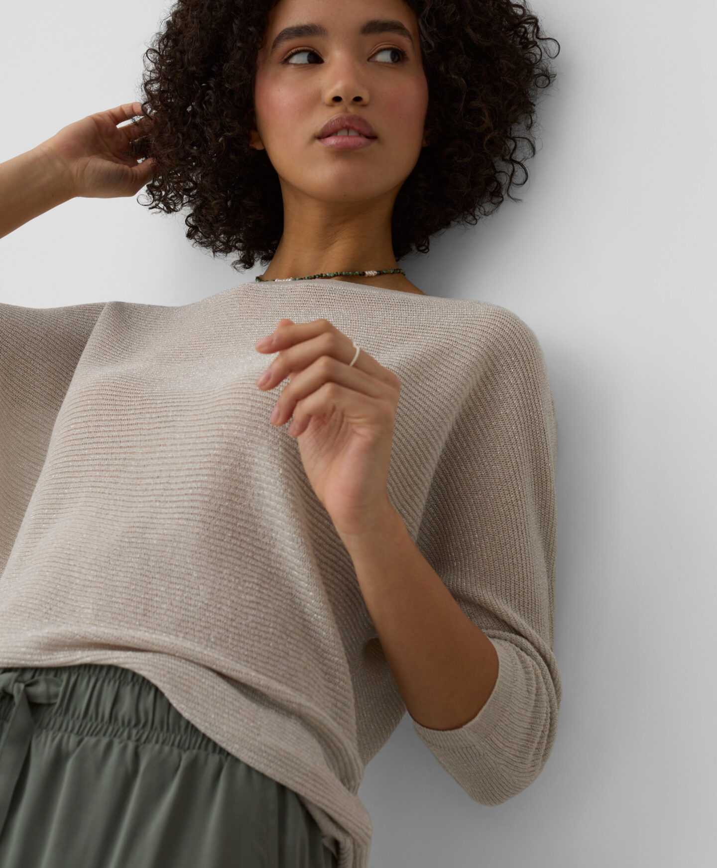 Puloverul pentru femei va adăuga o notă de strălucire garderobei tale! Este ușor, lejer și permite pielii să respire. Croiala lejeră tip kimono asigură confort și libertate de mișcare. Puloverul arată excelent în combinație cu pantaloni eleganți sau o fustă.