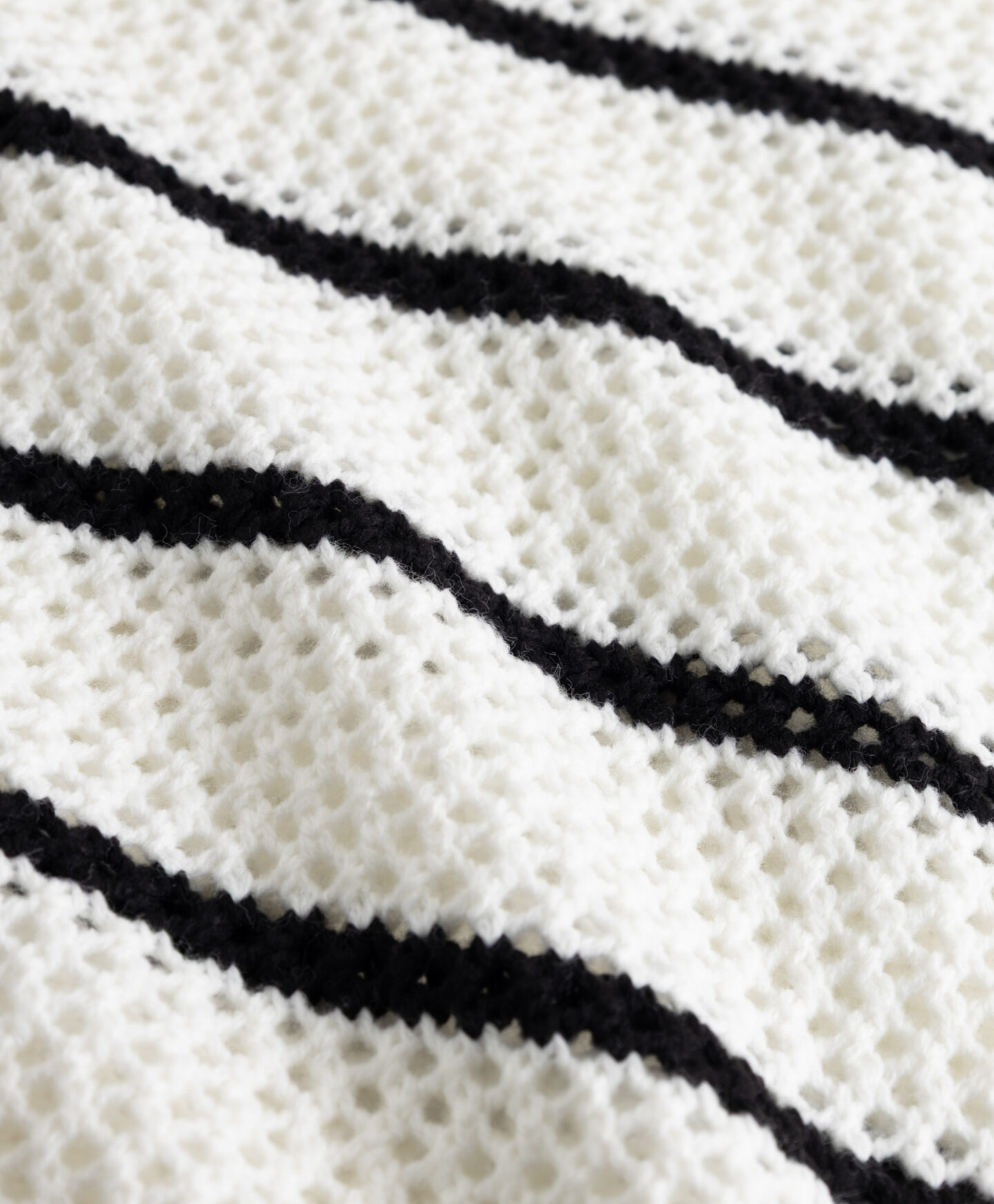 Puloverul pentru femei cu model ajurat și dungi este o alegere la modă. Modelul ajurat este respirabil și extrem de estetic, transformând puloverul într-un accent delicat pentru orice ținută, casual sau elegantă.
