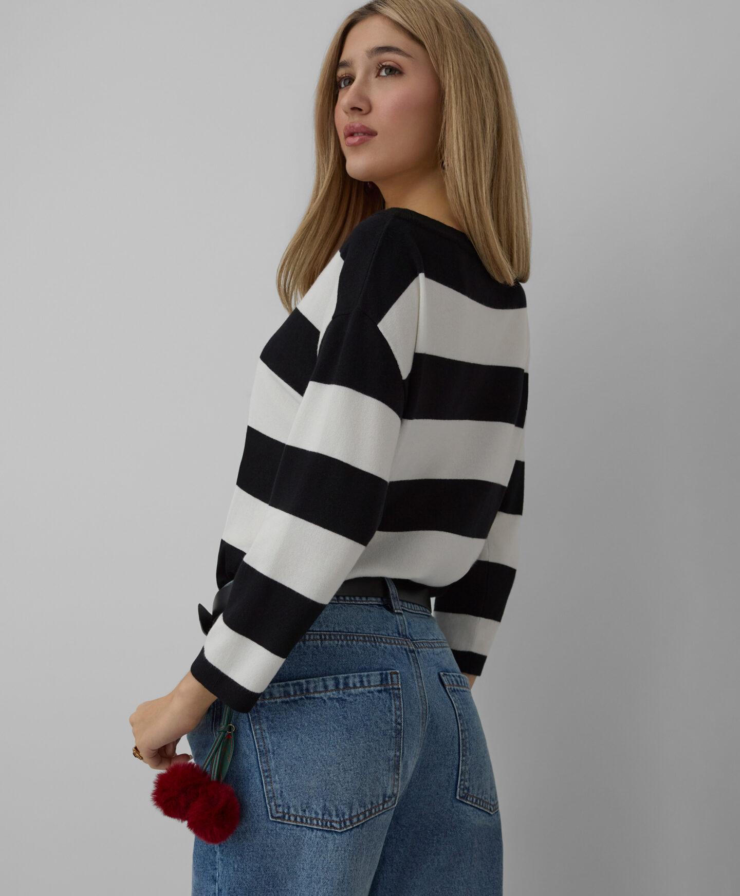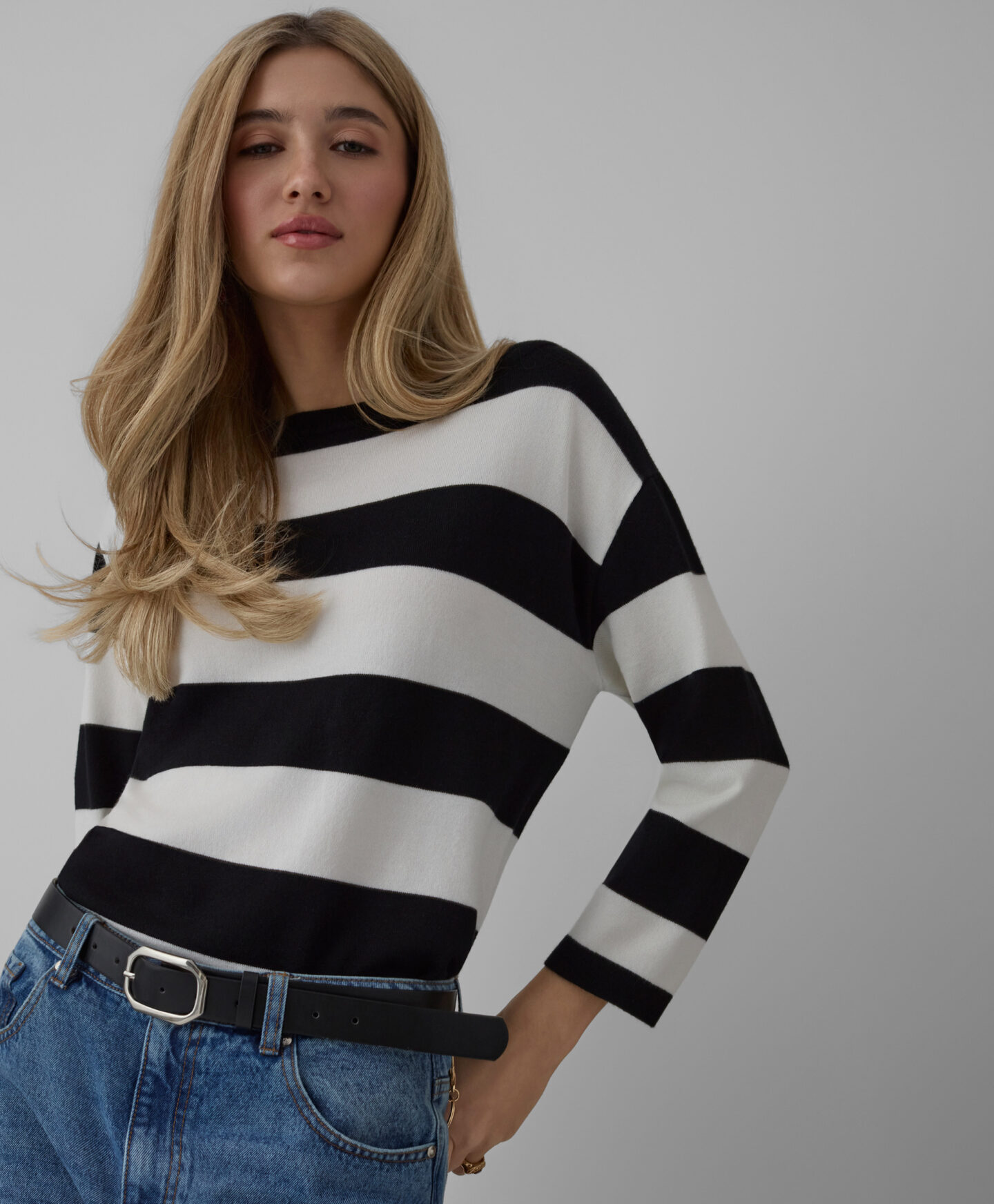 Puloverul pentru femei în dungi se remarcă prin croiala sa deosebită. Adaosul de viscoză îl face moale și respirabil, oferind confort pe tot parcursul zilei. Stilul tip kimono îi conferă un aspect unic și asigură libertate de mișcare.