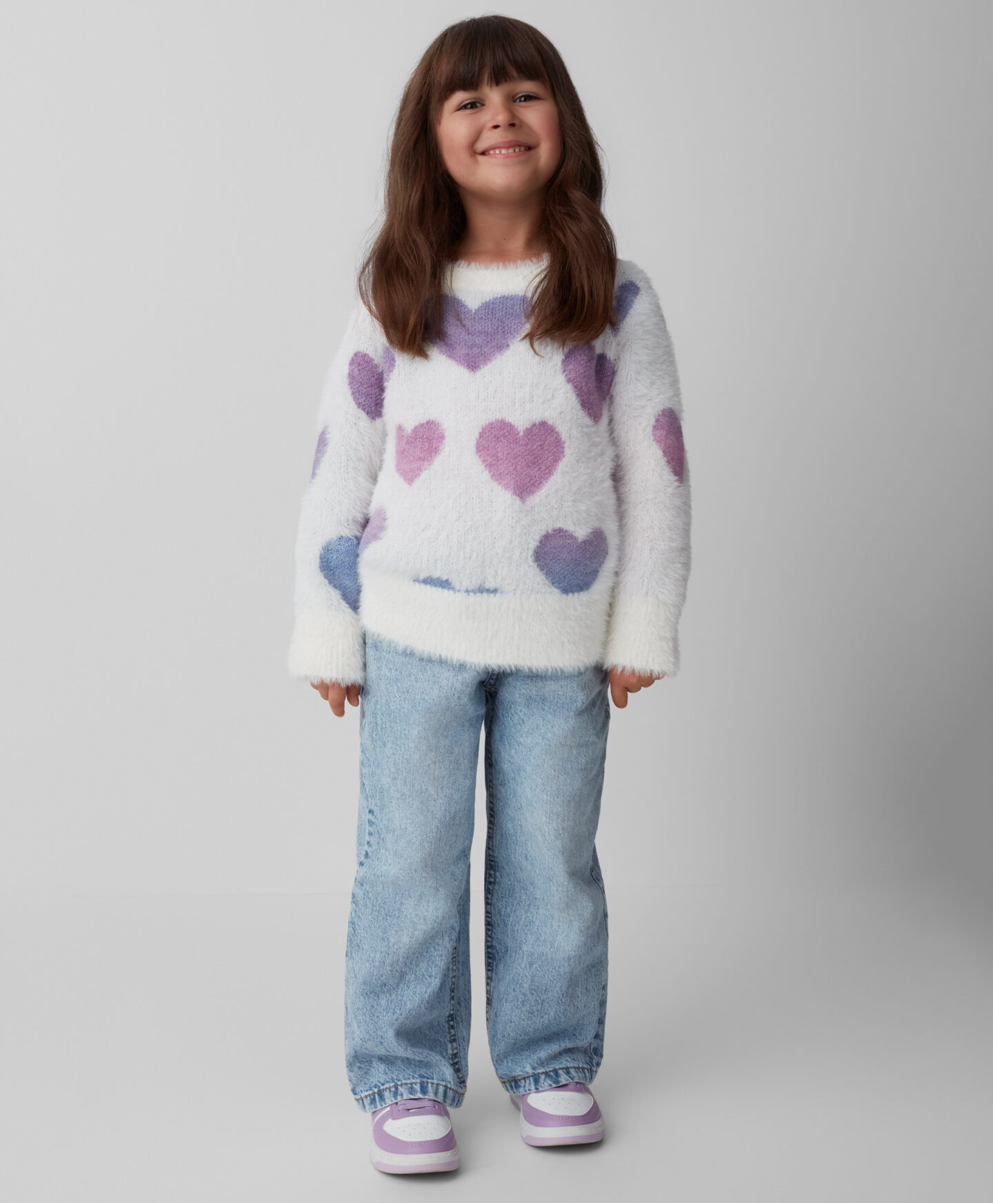 Puloverul cu inimioare pentru fete este perfect pentru micile iubitoare de confort și căldură. Designul său fermecător îl face moale și plăcut la atingere. Ideal pentru zilele răcoroase de toamnă și iarnă, este alegerea perfectă pentru grădiniță, școală sau timpul liber. Se potrivește de minune cu jeanși sau colanți.