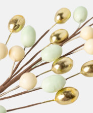 Crenguța cu ouă aurii de Paște creează o atmosferă festivă în orice interior. Se potrivește atât ca element în coșul pascal, cât și ca decorațiune pentru masa de sărbătoare. Pune-o într-un ghiveci sau așaz-o lejer pe fața de masă, pentru a încânta privirea la micul dejun de Paște.
