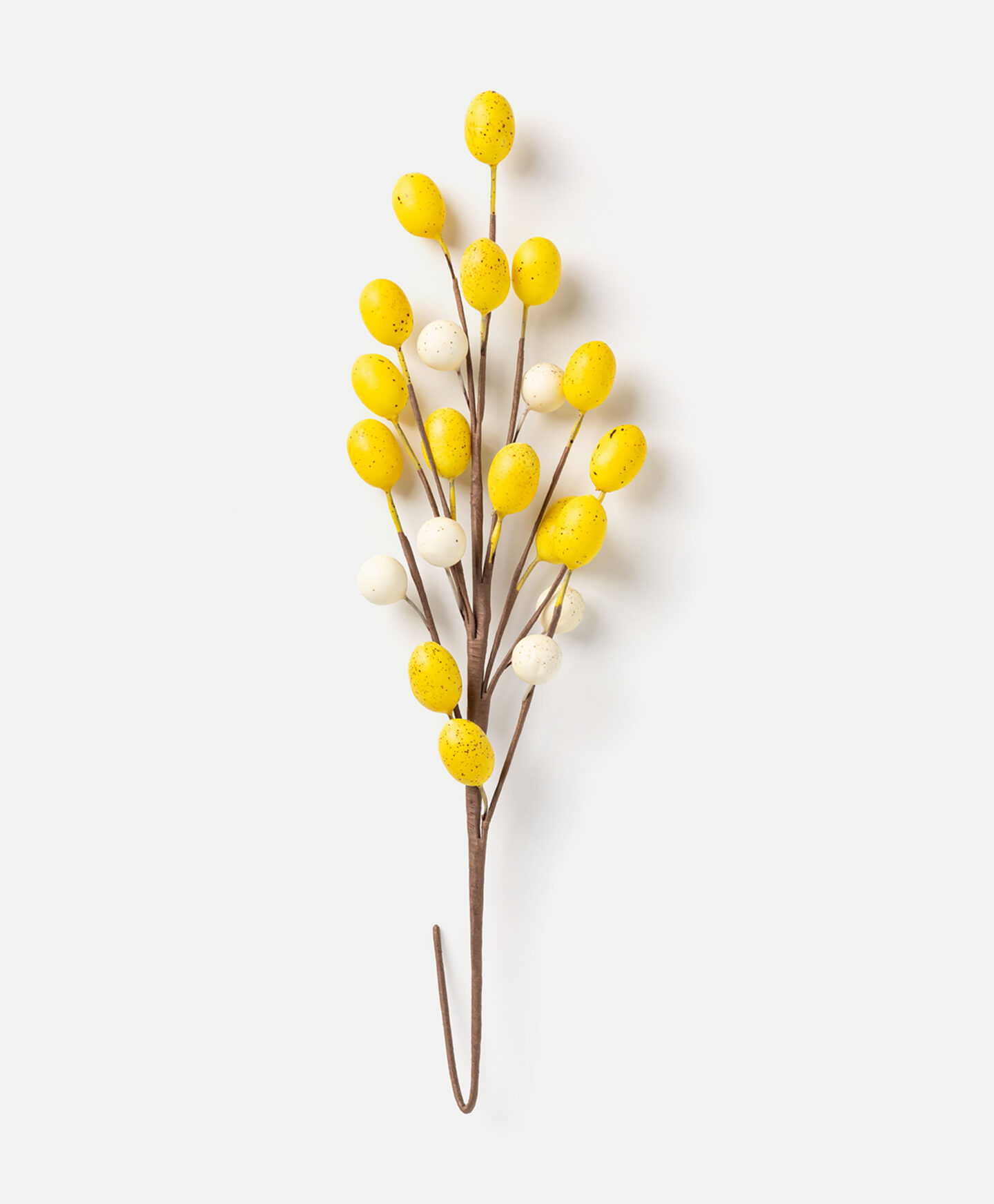 Crenguța cu ouă galbene de Paște creează o atmosferă festivă în orice interior. Se potrivește atât ca element în coșul pascal, cât și ca decorațiune pentru masa de sărbătoare. Pune-o într-un ghiveci sau așaz-o lejer pe fața de masă, pentru a încânta privirea la micul dejun de Paște.