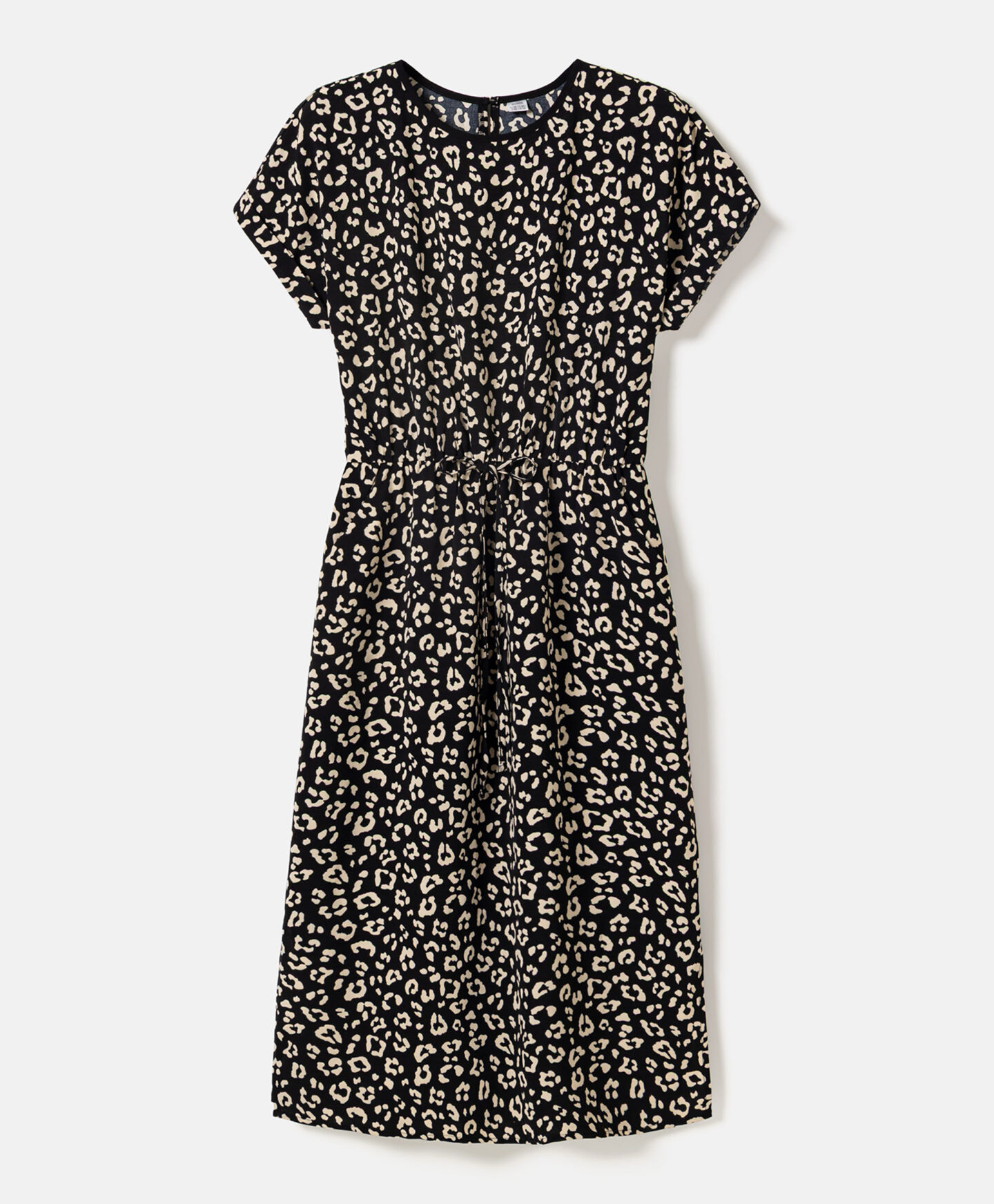 Rochia cu imprimeu leopard pentru femei, cu cordon în talie, este o piesă versatilă și plină de personalitate, perfectă pentru purtarea zilnică. Imprimeul animal te scoate în evidență. Rochia arată excelent în combinație cu o jachetă din denim sau un sacou.