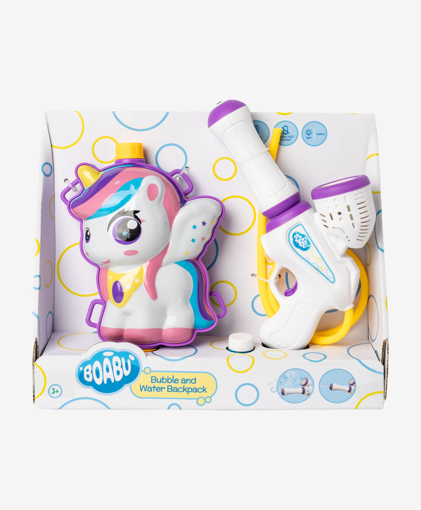 Rucsacul unicorn pentru apă și baloane garantează distracție variată și fără sfârșit. Pistolul cu apă este ușor de folosit, sigur și eficient, iar rezervorul poate fi reumplut cu ușurință din orice sursă. Rucsacul are bretele reglabile care se adaptează la înălțimea copilului și asigură purtarea confortabilă în timpul jocului. Sunt disponibile două modele din care se poate alege.