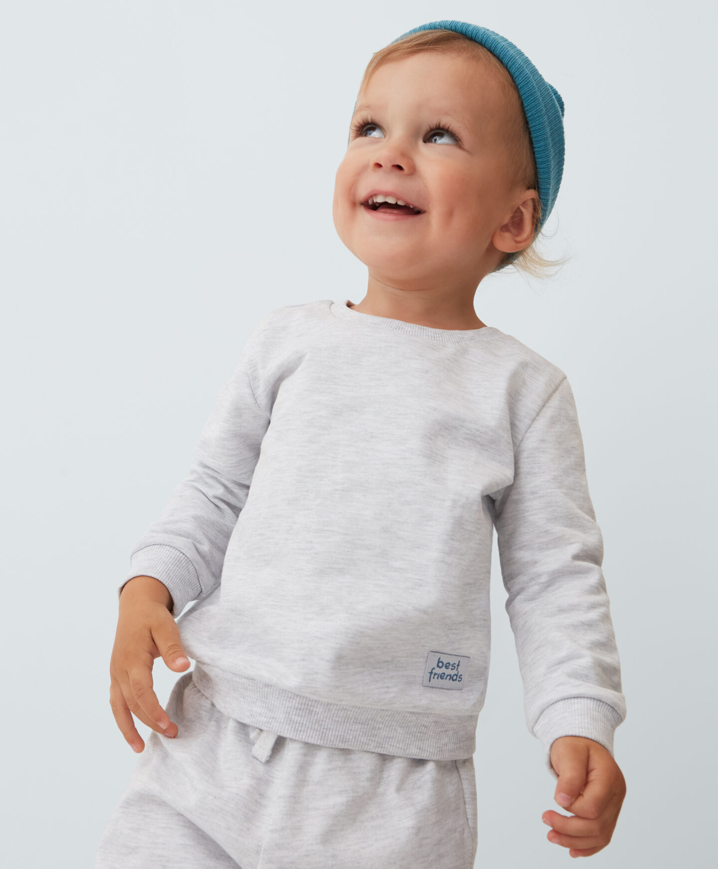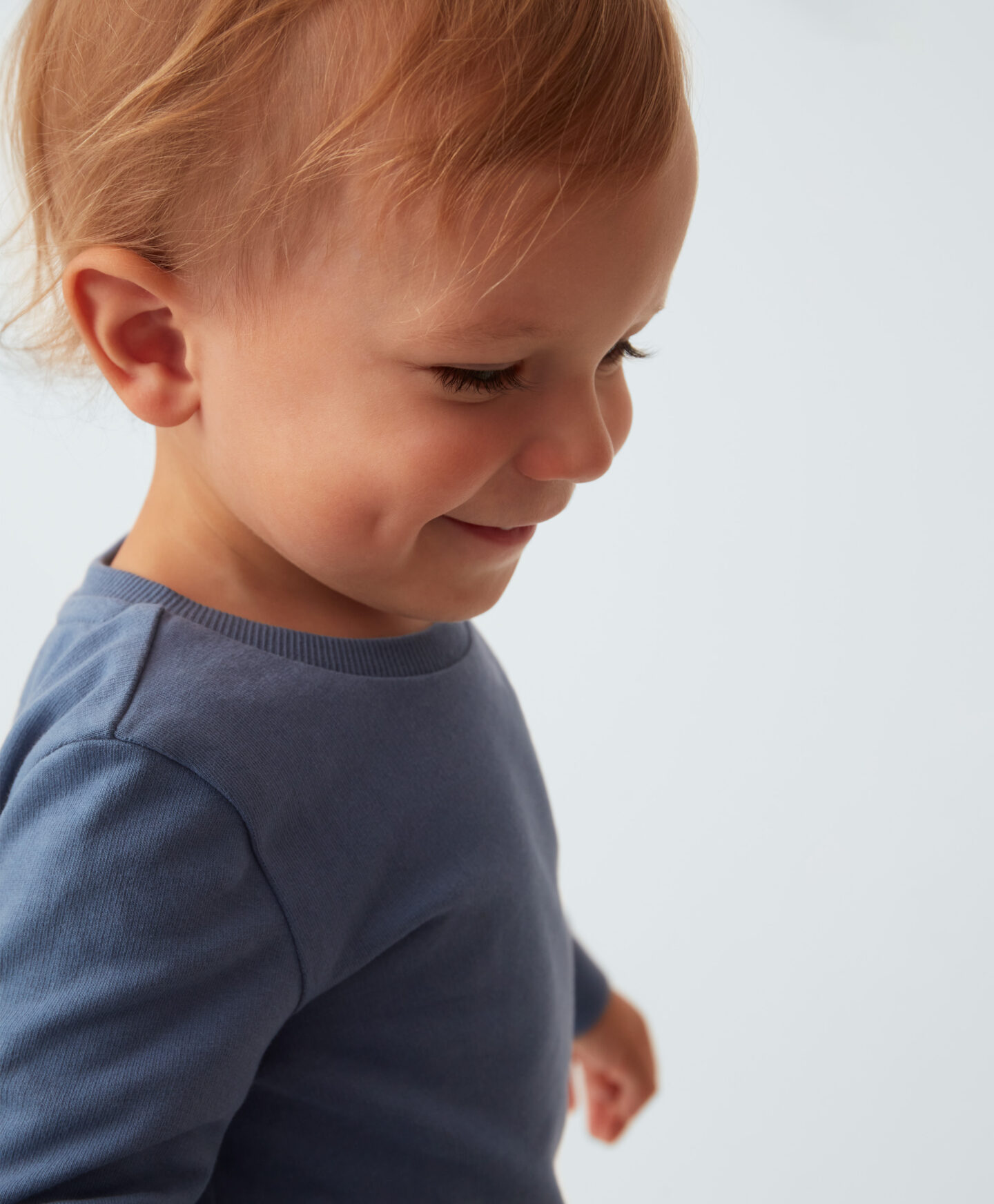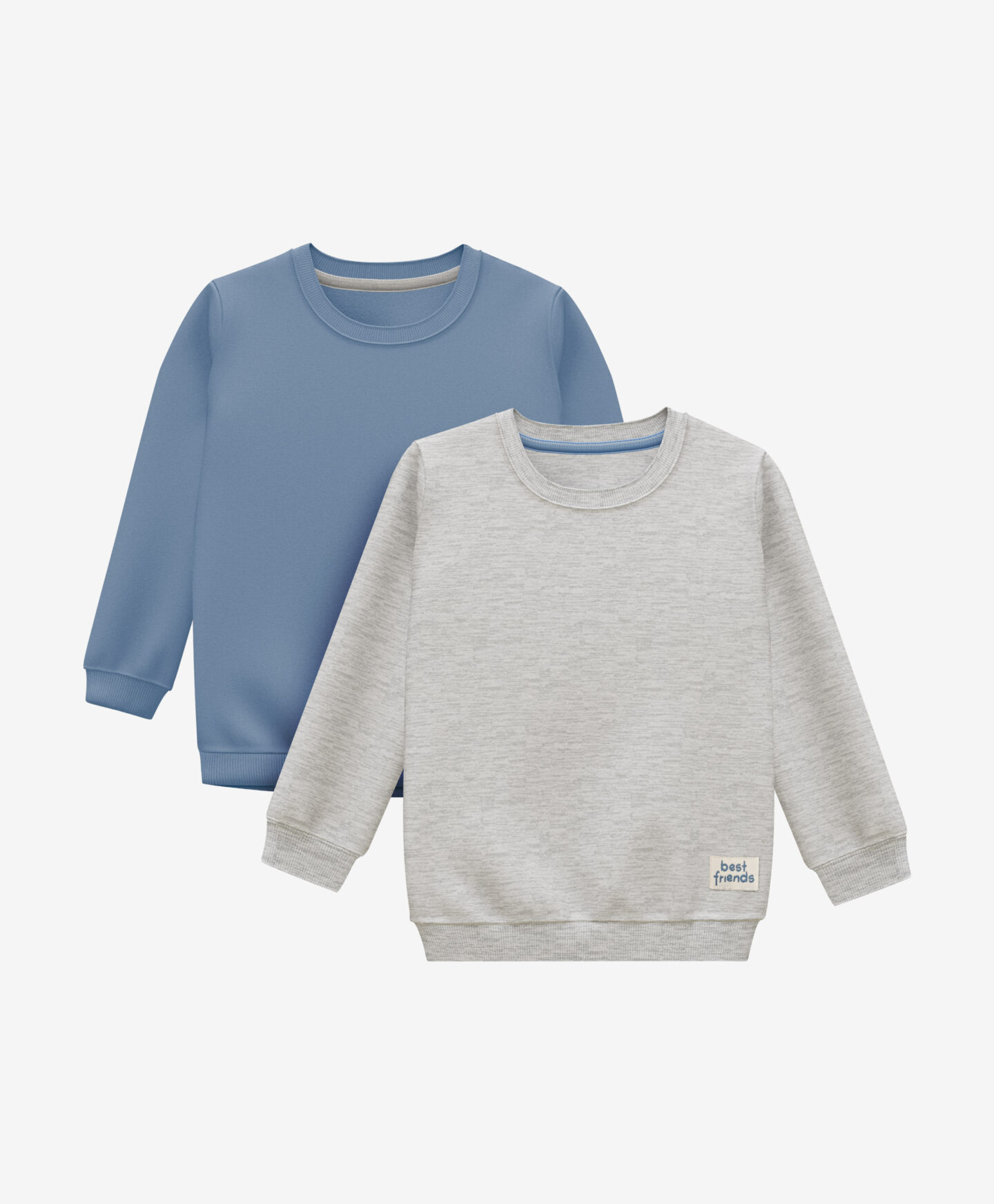 Setul de 2 bluze 100% bumbac pentru bebeluși băieți se potrivește perfect cu pantalonii din aceeași colecție. Bluzele sunt moi, călduroase și finisate cu manșete elastice. Paleta discretă de culori și designul simplu le fac foarte versatile. Acest set este indispensabil în orice trusou.