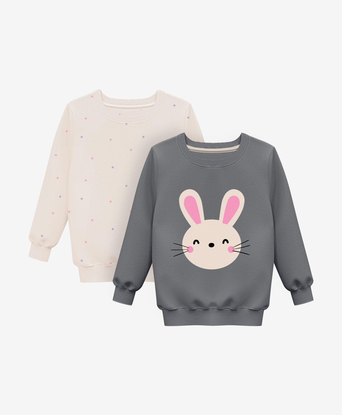 Setul de 2 bluze 100% bumbac pentru bebeluși fete, cu imprimeu cu iepurași, se combină perfect cu pantalonii din ofertă. Bluzele sunt moi, călduroase și finisate cu manșete elastice. Acest set este indispensabil în orice trusou.