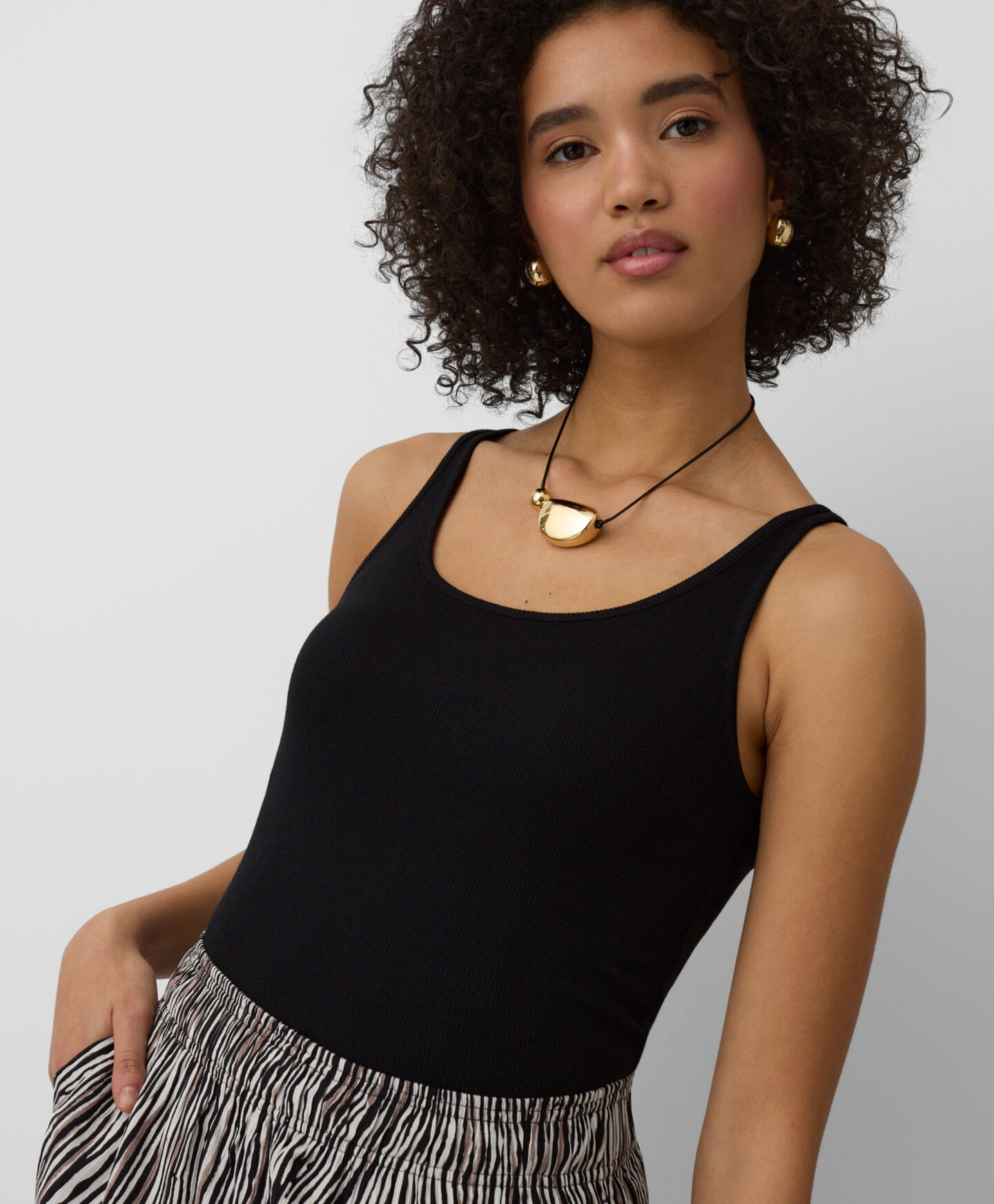 Setul de 2 maiouri pentru femei cu dungi completează perfect garderoba. Combinația de culori alb și negru îl face indispensabil. Materialul elastic se așază frumos și permite pielii să respire. Fiecare piesă se potrivește cu jeanși, pantaloni scurți sau pantaloni eleganți.