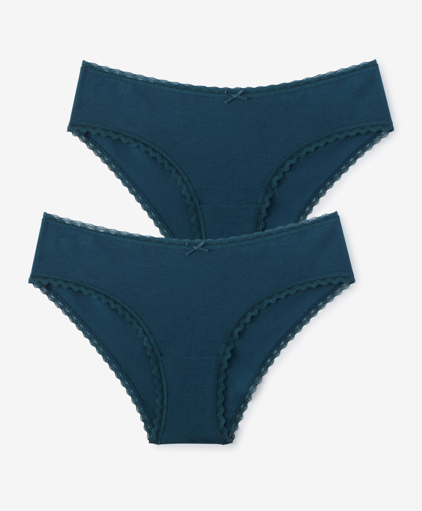 Setul de 2 perechi chiloți cu dantelă, cu un conținut ridicat de bumbac, îmbină confortul cu eleganța subtilă. Materialul moale și respirabil îți oferă comoditate pe tot parcursul zilei. Finisajele delicate din dantelă adaugă un plus de farmec, făcându-i ideali atât pentru purtarea zilnică, cât și pentru ocazii speciale. Croiala clasică îi face ușor de asortat.