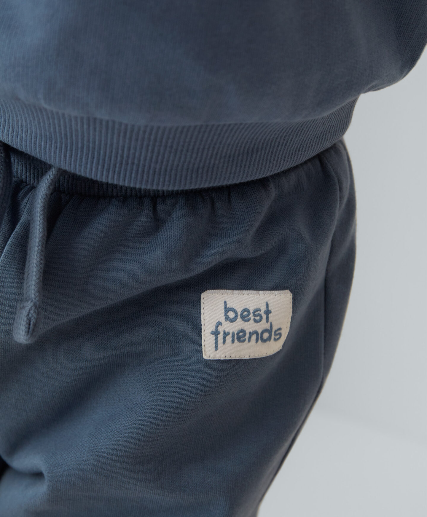 Setul de 2 perechi pantaloni 100% bumbac pentru bebeluși băieți este esențial în trusou. Pantalonii sunt moi, plăcuți pe piele și fiecare pereche are un model diferit. Sunt finisați cu manșete elastice și șnur în talie pentru o potrivire perfectă. Pot fi asortați cu bluzele din aceeași colecție.