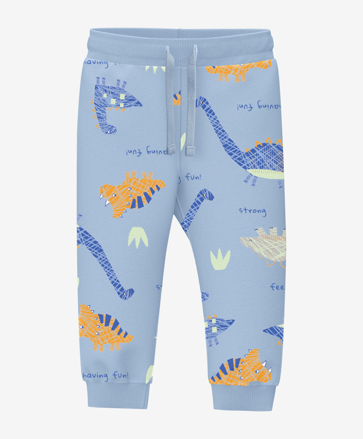 Setul de 2 perechi pantaloni 100% bumbac pentru bebeluși băieți, cu imprimeu de dinozauri, este indispensabil în trusou. Pantalonii sunt moi și confortabili, fiecare având un model diferit. Manșetele elastice și talia cu șnur asigură o potrivire ideală. Pot fi combinați cu bluzele asortate din colecție.