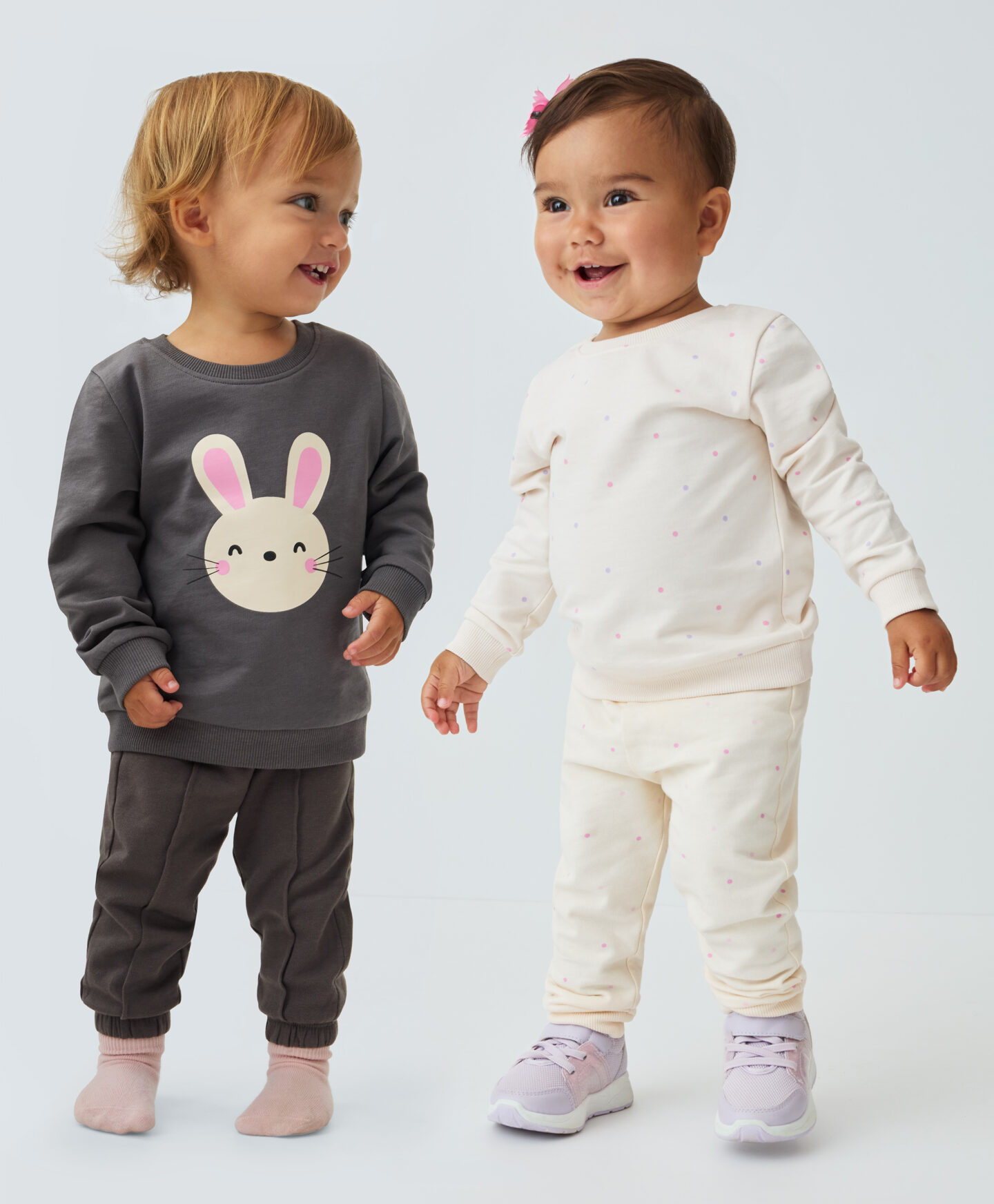 Setul de 2 perechi pantaloni 100% bumbac pentru bebeluși fete este un element de bază al trusoului. Pantalonii sunt moi și plăcuți pe piele, fiecare pereche cu un imprimeu diferit. Manșetele elastice și talia cu șnur le oferă o potrivire confortabilă și practică.