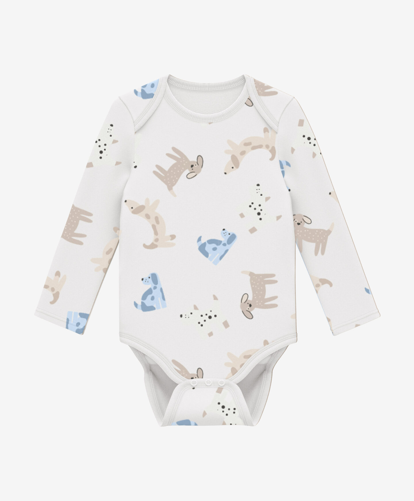 Setul de 5 body-uri 100% bumbac pentru bebeluși băieți, cu imprimeu de căței, va fi iubit de micii fani ai animalelor. Bumbacul moale și respirabil oferă confort în purtare. Închiderea practică cu capse îți ușurează schimbarea scutecului. Modelele cu elemente de animale pe unele body-uri adaugă personalitate.