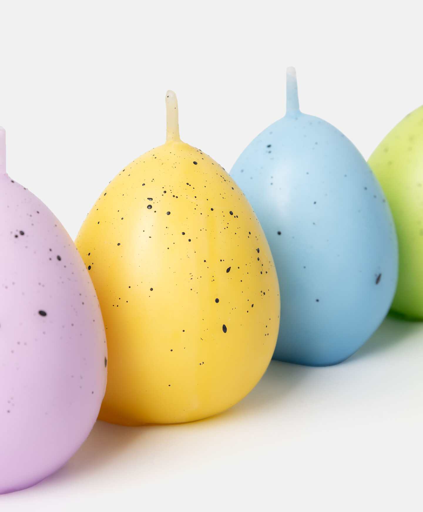 Setul de 6 lumânări în formă de ou reprezintă un decor pascal fermecător. Alături de flori sau crenguțe decorative, creează un aranjament elegant și plin de culoare.