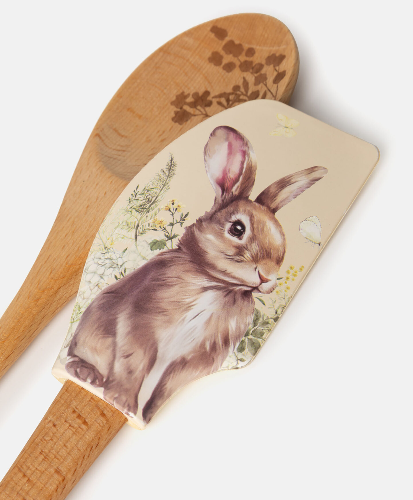 Setul de copt include o lingură de lemn și o spatulă din silicon cu motive de Paște. Este perfect pentru cei care iubesc gătitul, coptul și proiectele culinare creative. Accesoriile sunt rezistente la temperaturi înalte, nu zgârie suprafețele și sunt ușor de curățat.
