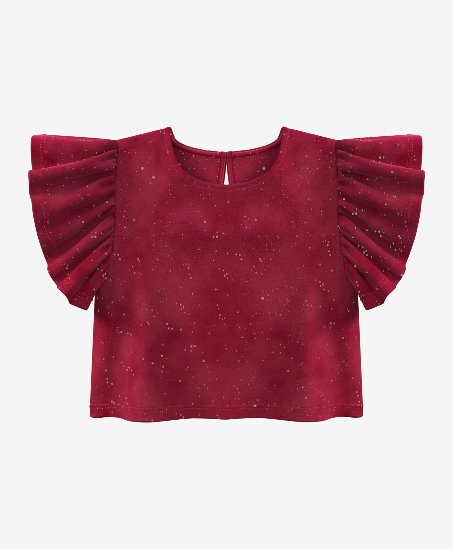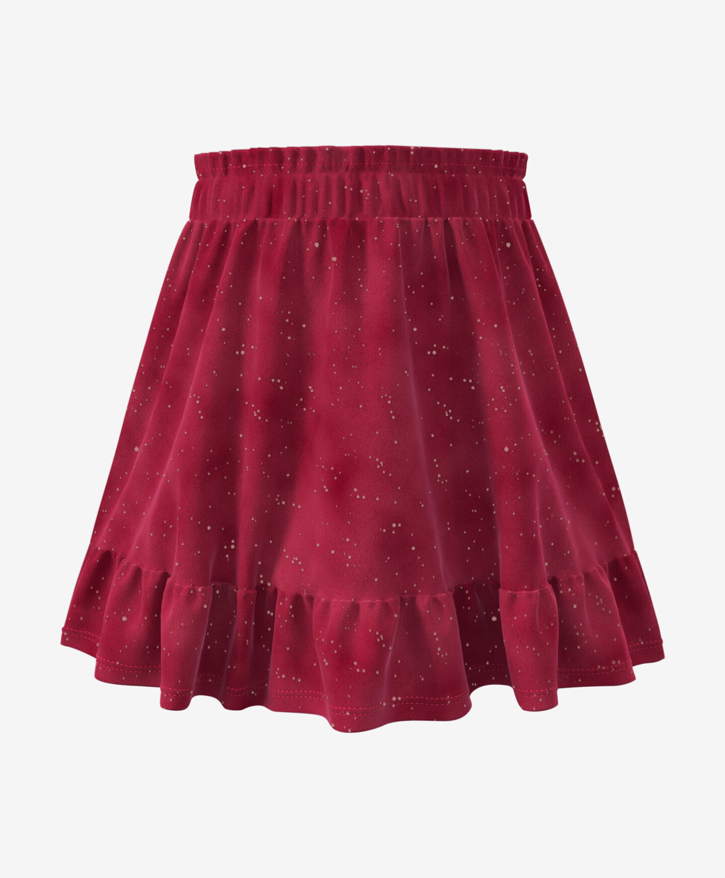 Setul pentru fete, format dintr-un top și o fustă, este ținuta perfectă pentru o mică domnișoară. Setul este realizat din catifea, iar volănașele de la mâneci și de pe fustă adaugă lejeritate și grație întregii ținute. Topul și fusta se completează perfect, formând un ansamblu armonios.